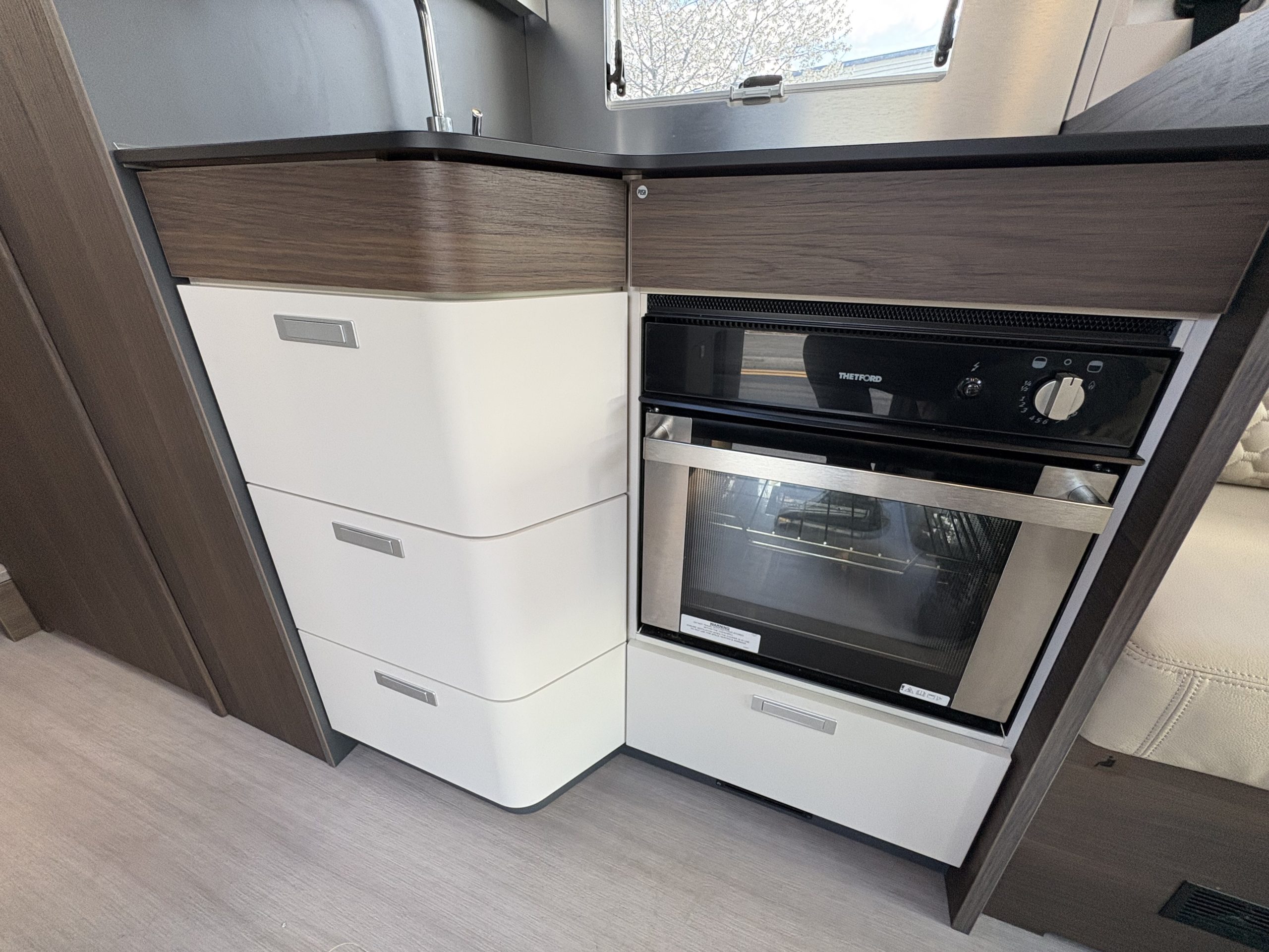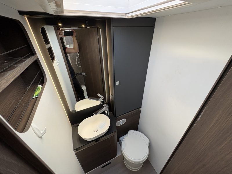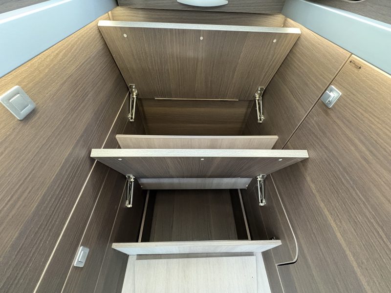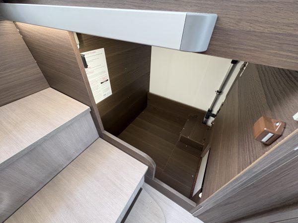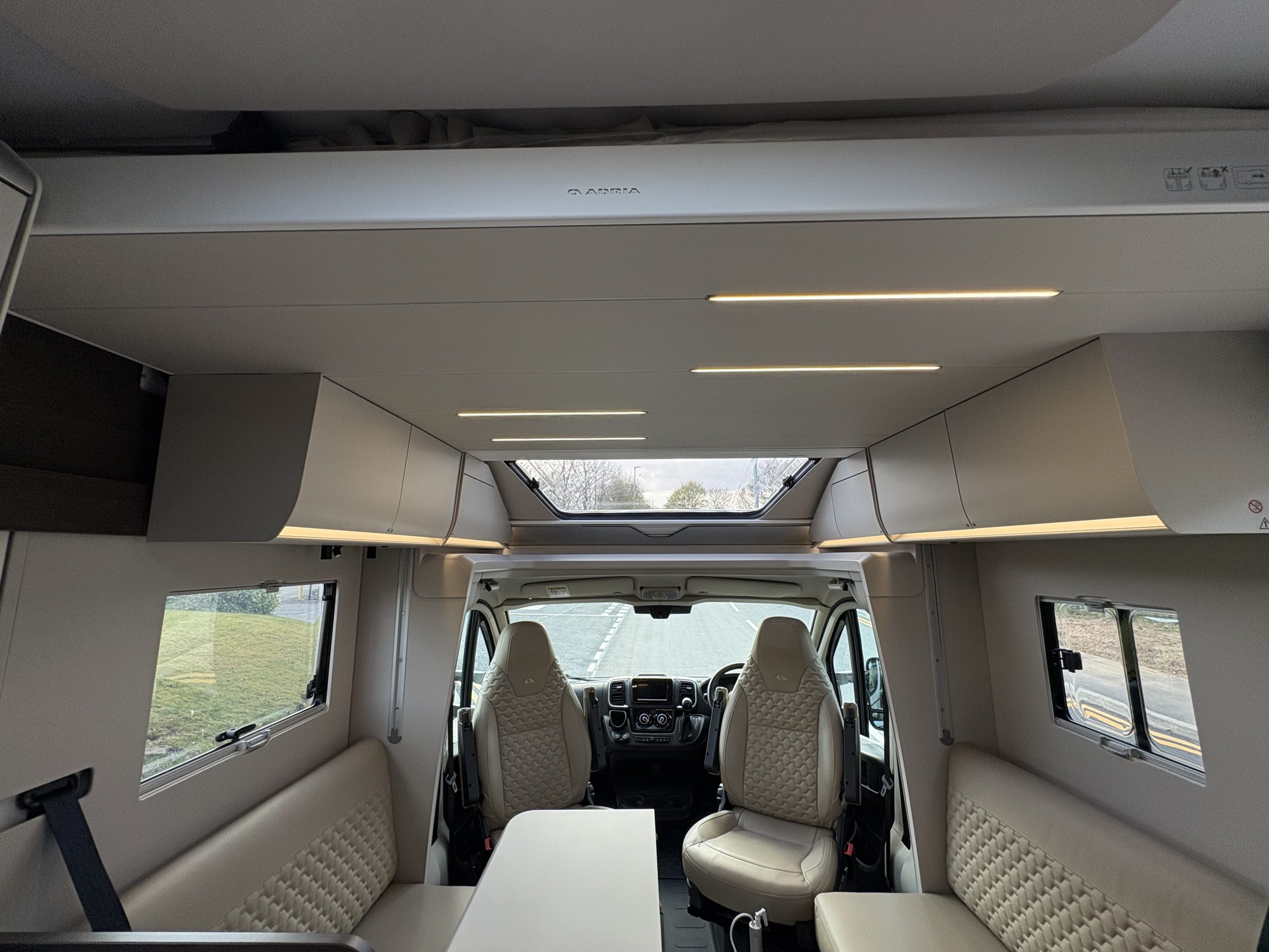 Charles Leather interior. It also has 4 travelling seats and is a 4 berth with a two large twin beds that convert easily into a double bed in the rear bedroom. This configuration gives a spacious Face to Face dinette area.