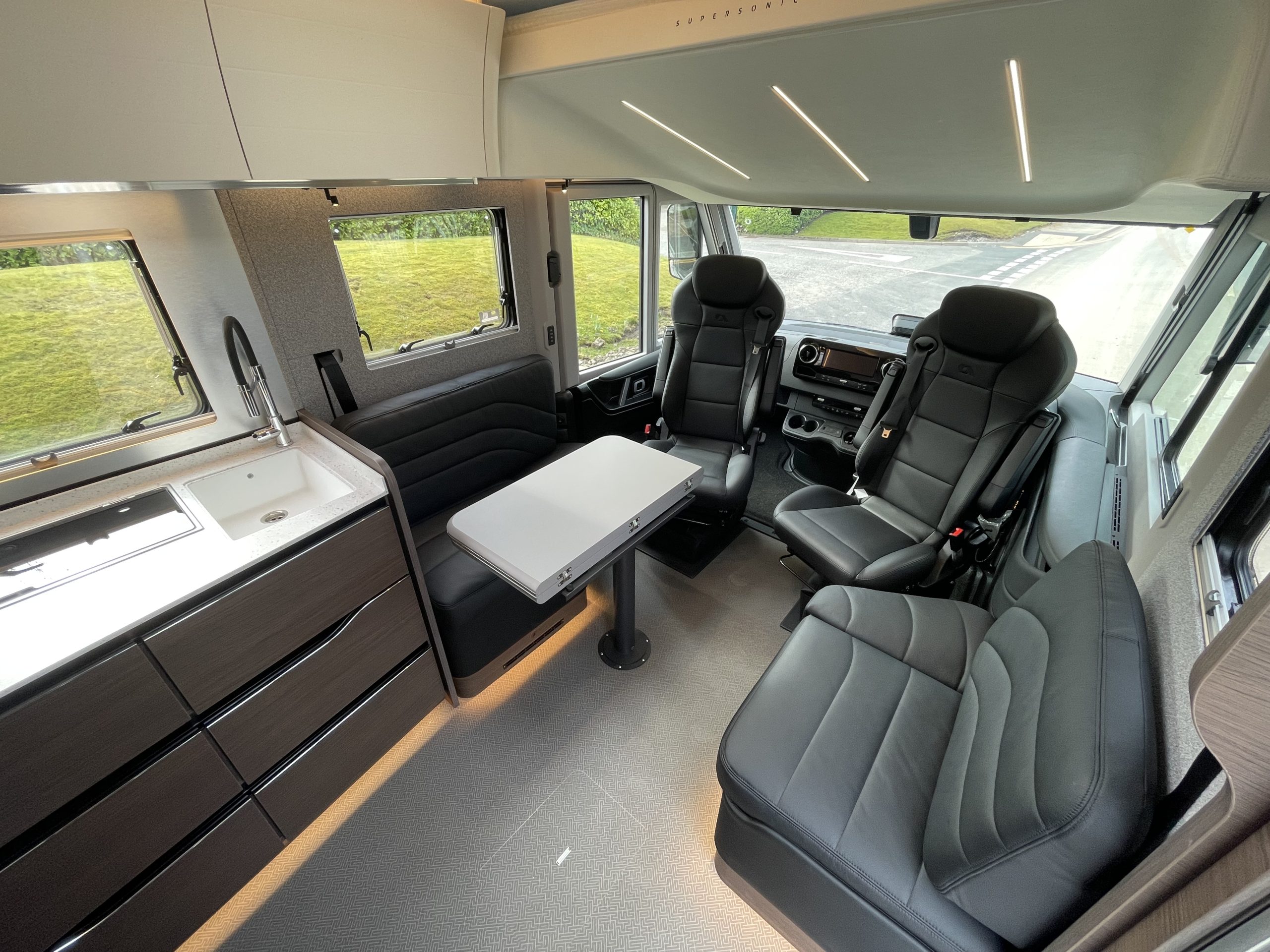 The Adria Supersonic stands out with its sleek, automotive-inspired exterior and panoramic roof, enhancing both style and natural light inside. Its high-end interior features premium upholstery, a spacious intelligently designed layout for superior comfort, advanced smart home controls and top-tier insulation ensure a seamless, year-round travel experience