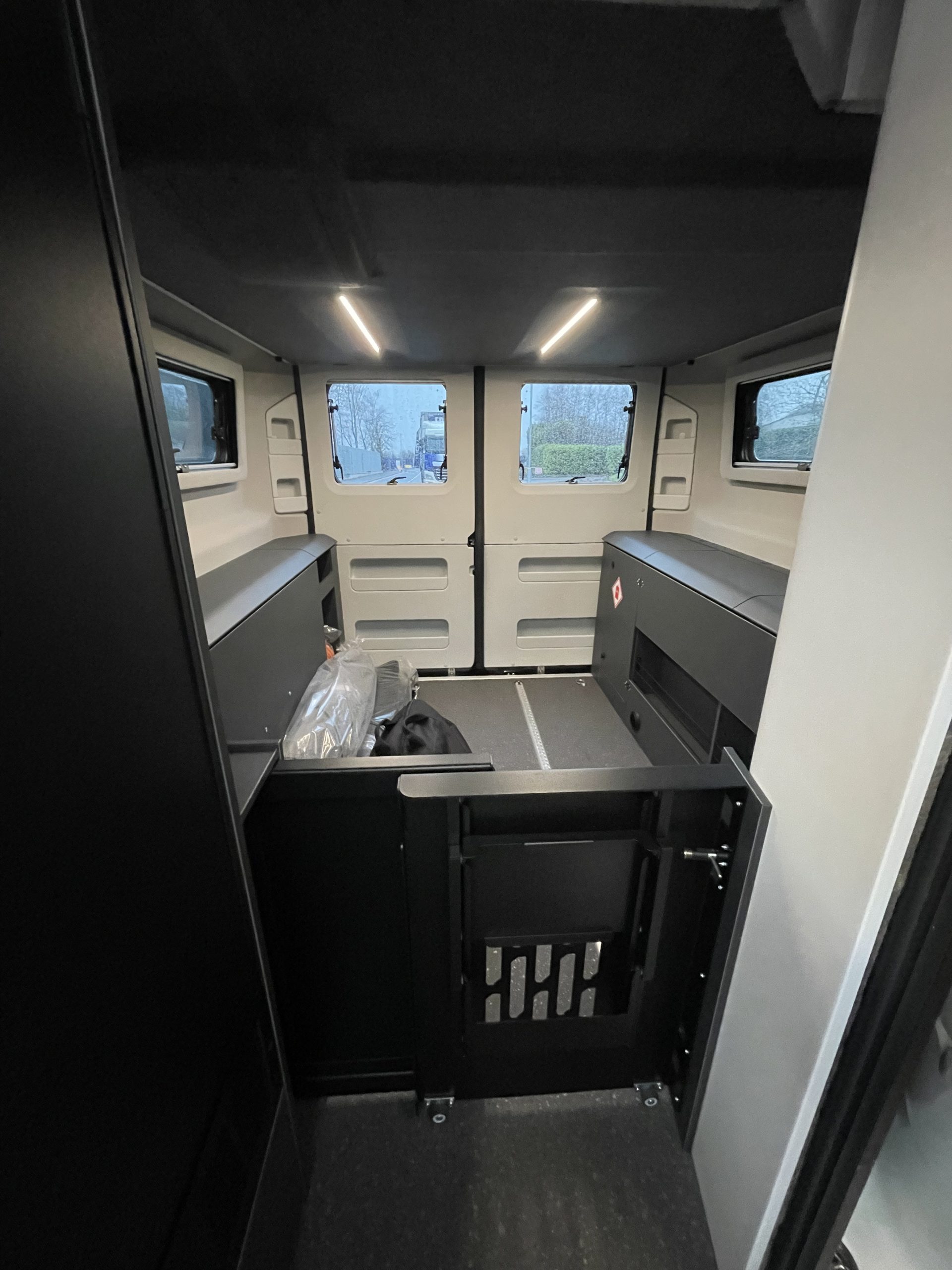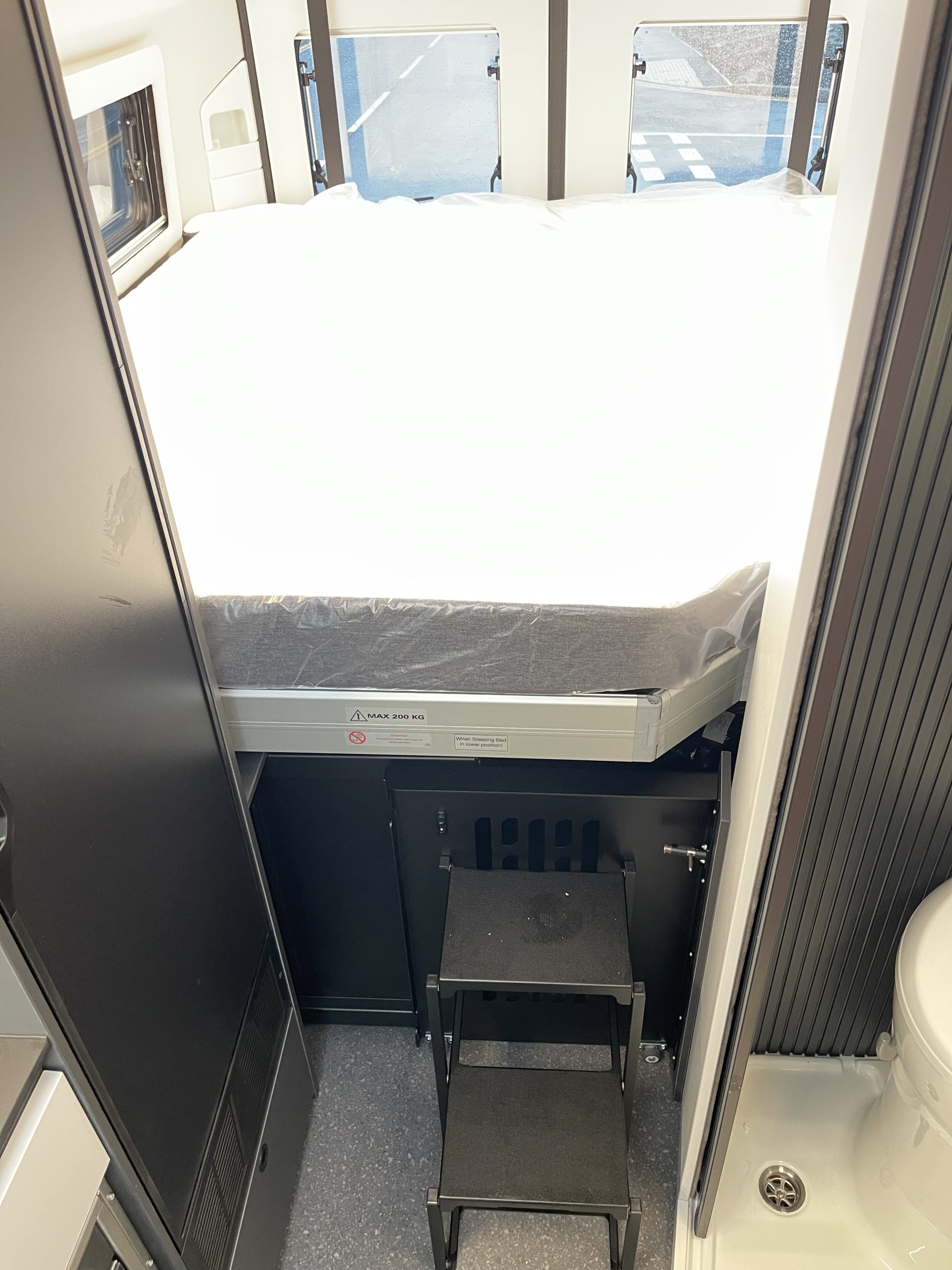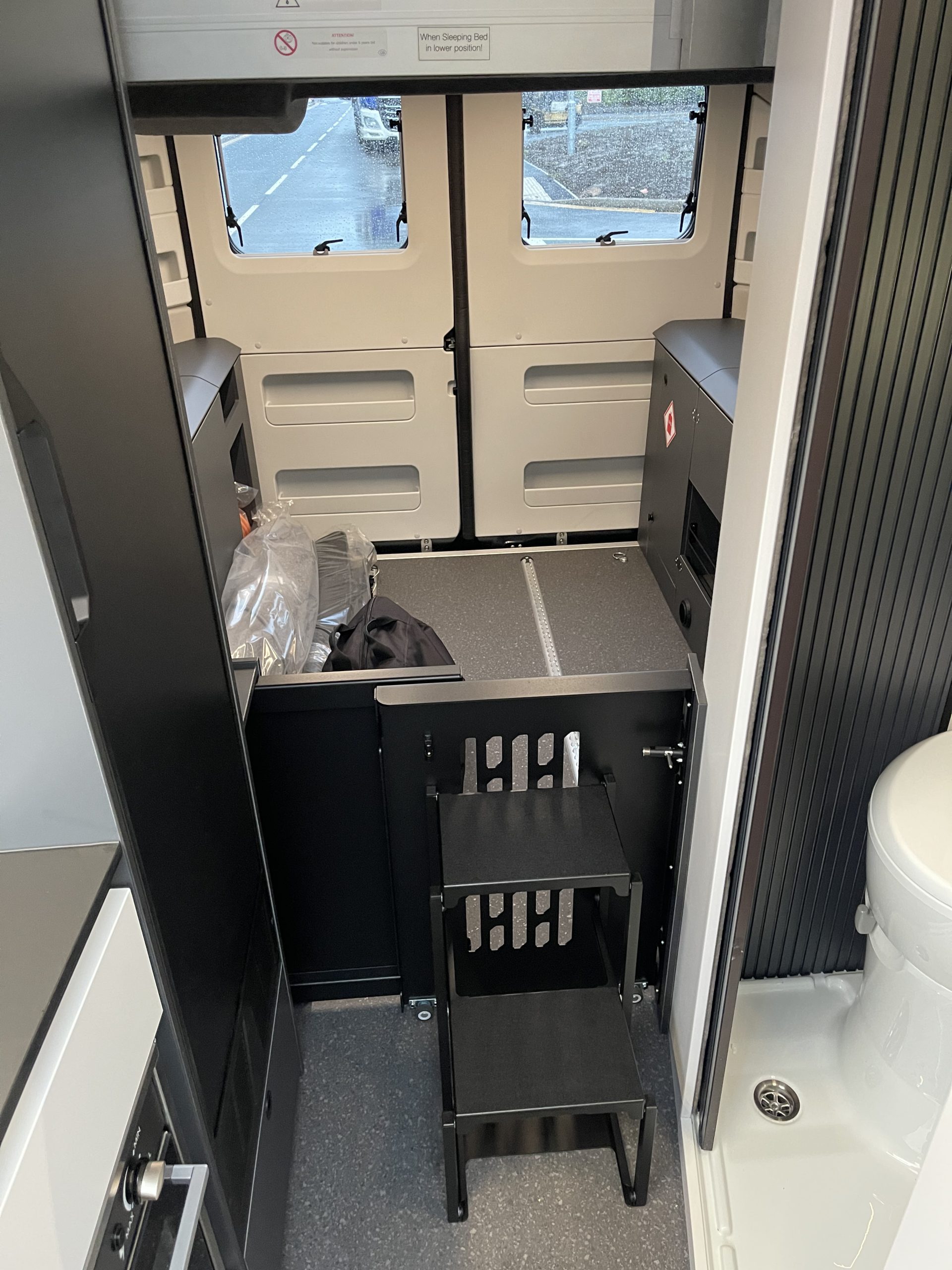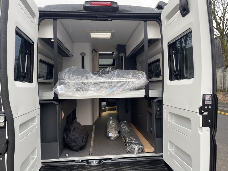 The Main Rear Bed Area Is A Large Electric Drop Down Double Bed Which In The Raised Position Provides An Extra Large Garage Area