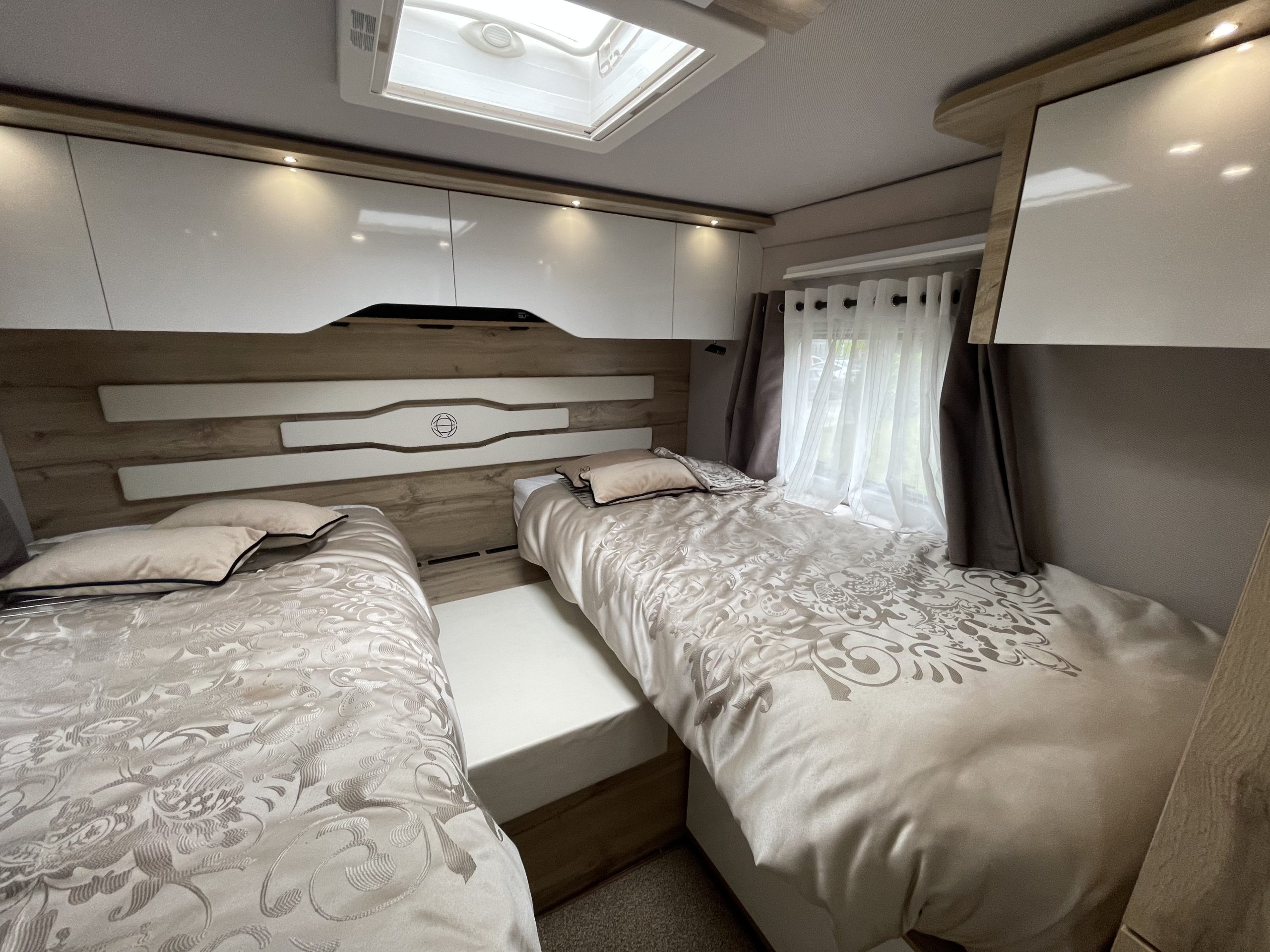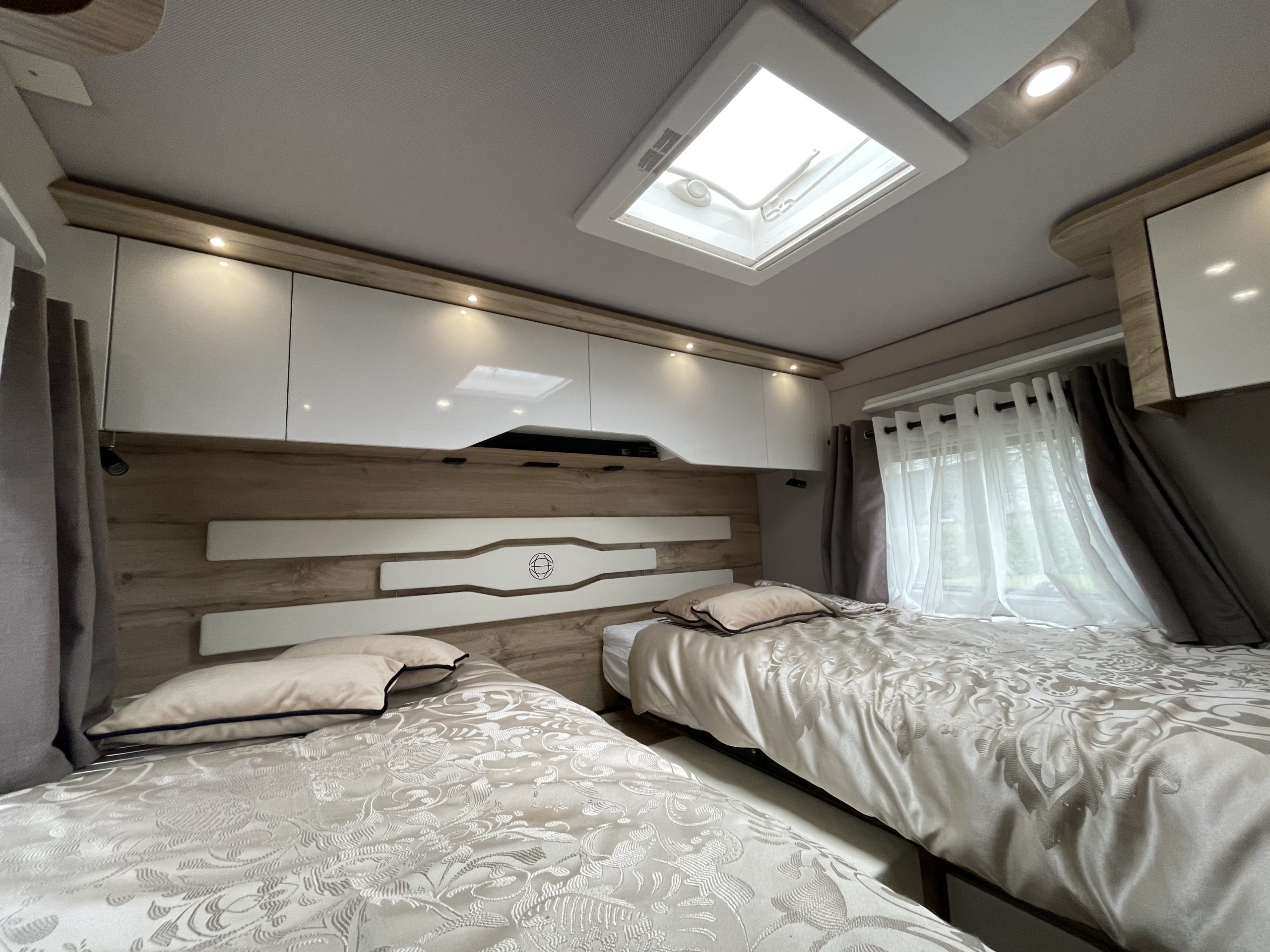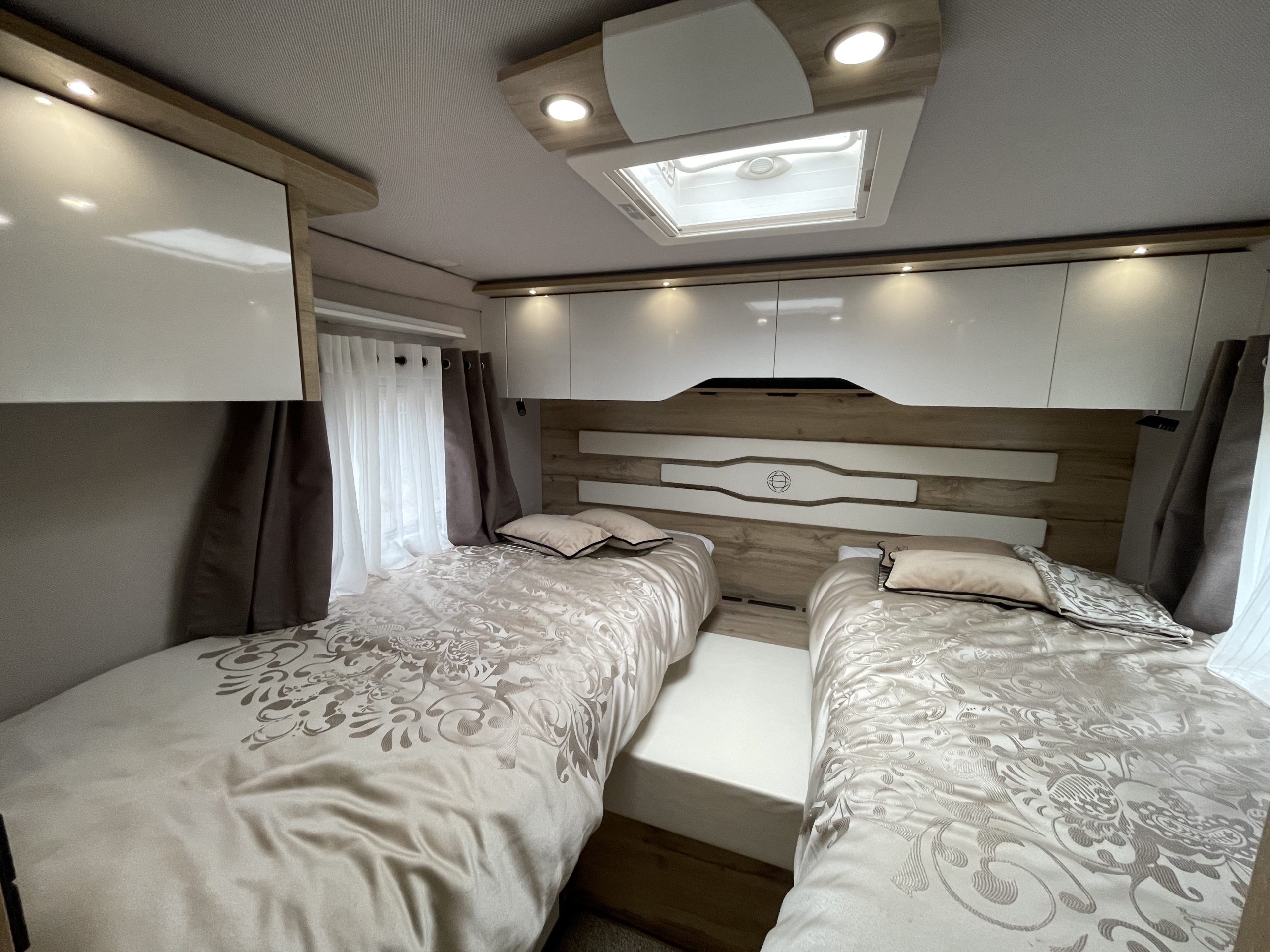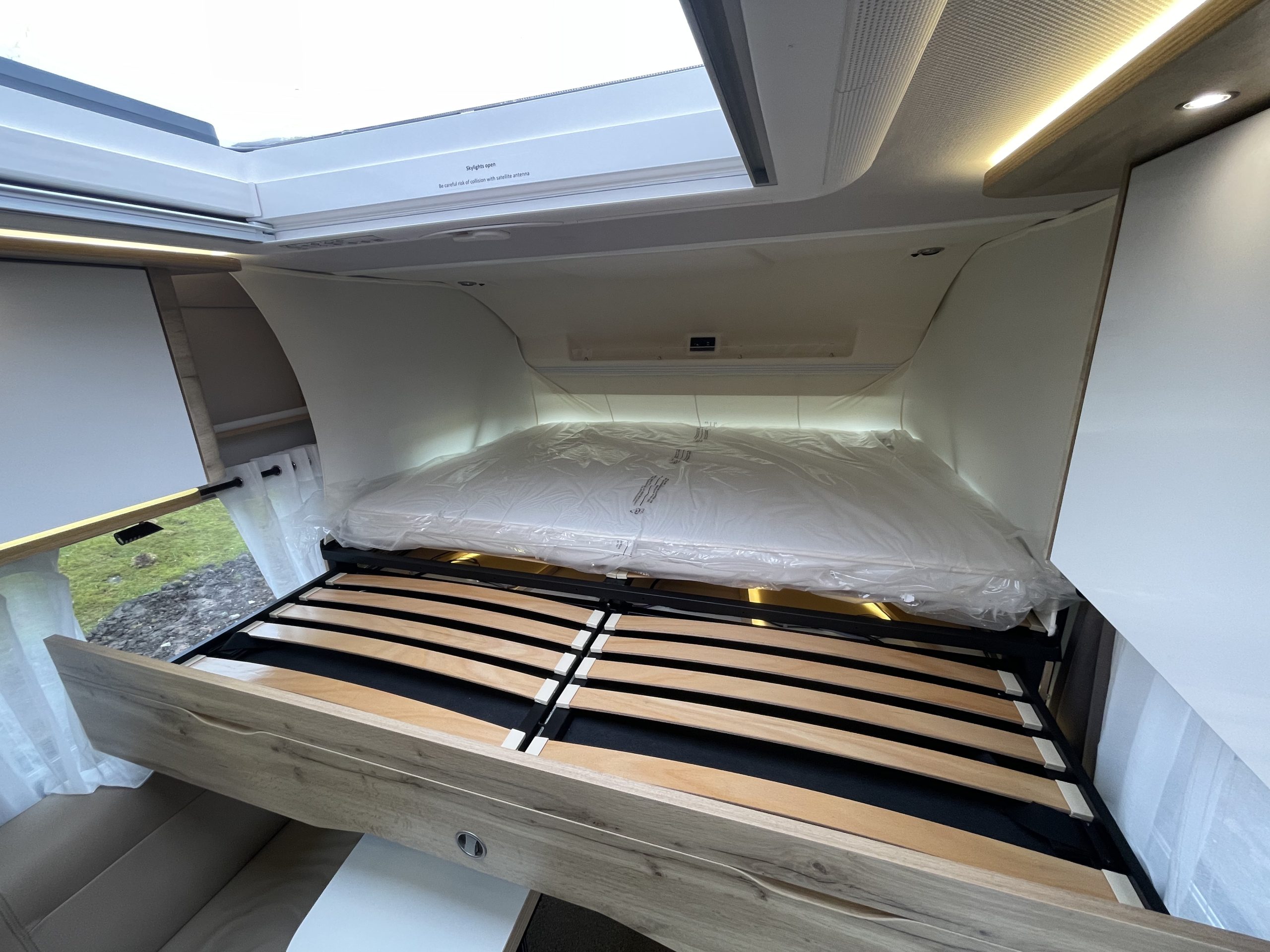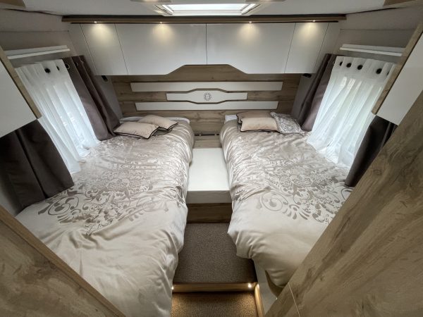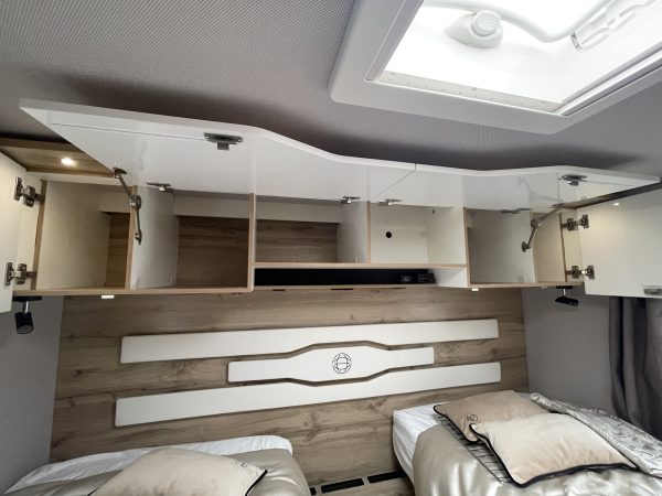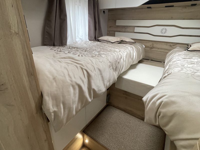 - Electrically operated retractable central bed or twin beds with electric wall-retraction system