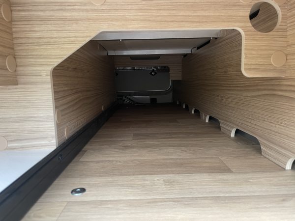 The large, insulated, walk-through locker lets you store your belongings without risk. Thanks to the raised twin beds above, the storage area boasts excellent height, ideal for transporting tall and bulky items. The doors are fitted with compression locks on double seals, ensuring water and air tightness. Thanks to the Al-Ko chassis, you’ll have a 20 cm-through double floor, offering thermal comfort as well as additional storage areas, thanks to additional external and internal hatches.