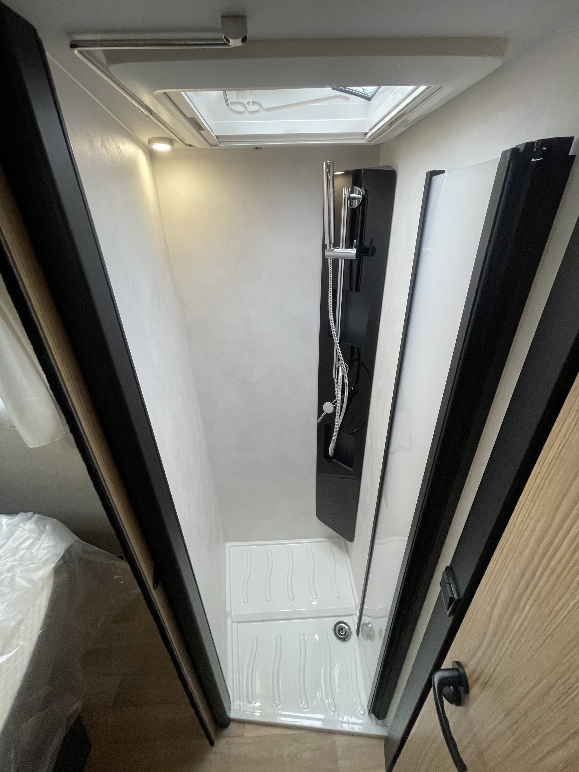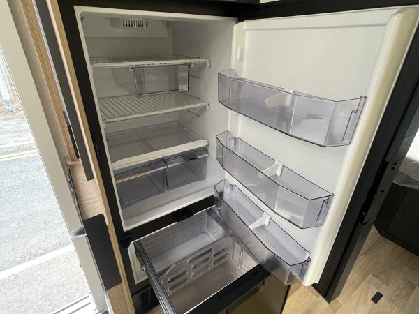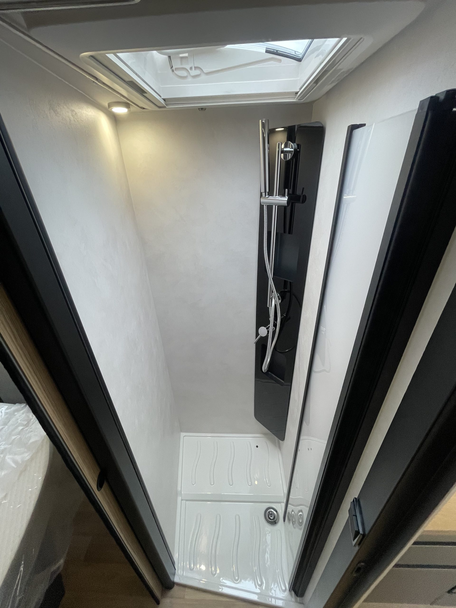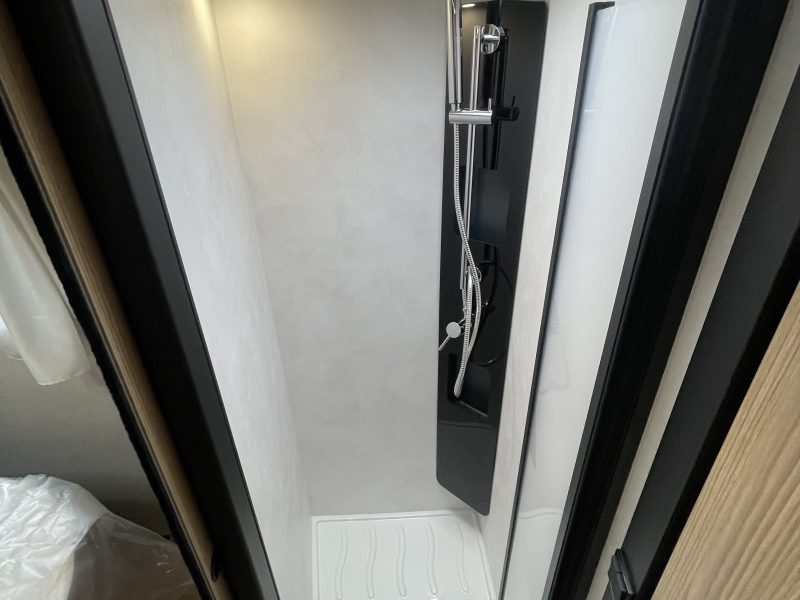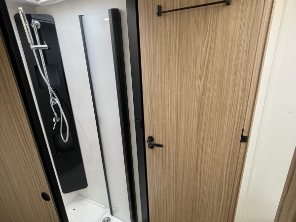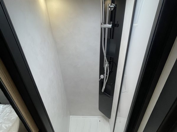 This vehicle features a comfortable shower separate from the bathroom. Sliding partitions close it off from the bedroom and lounge, giving you a perfectly private space.
