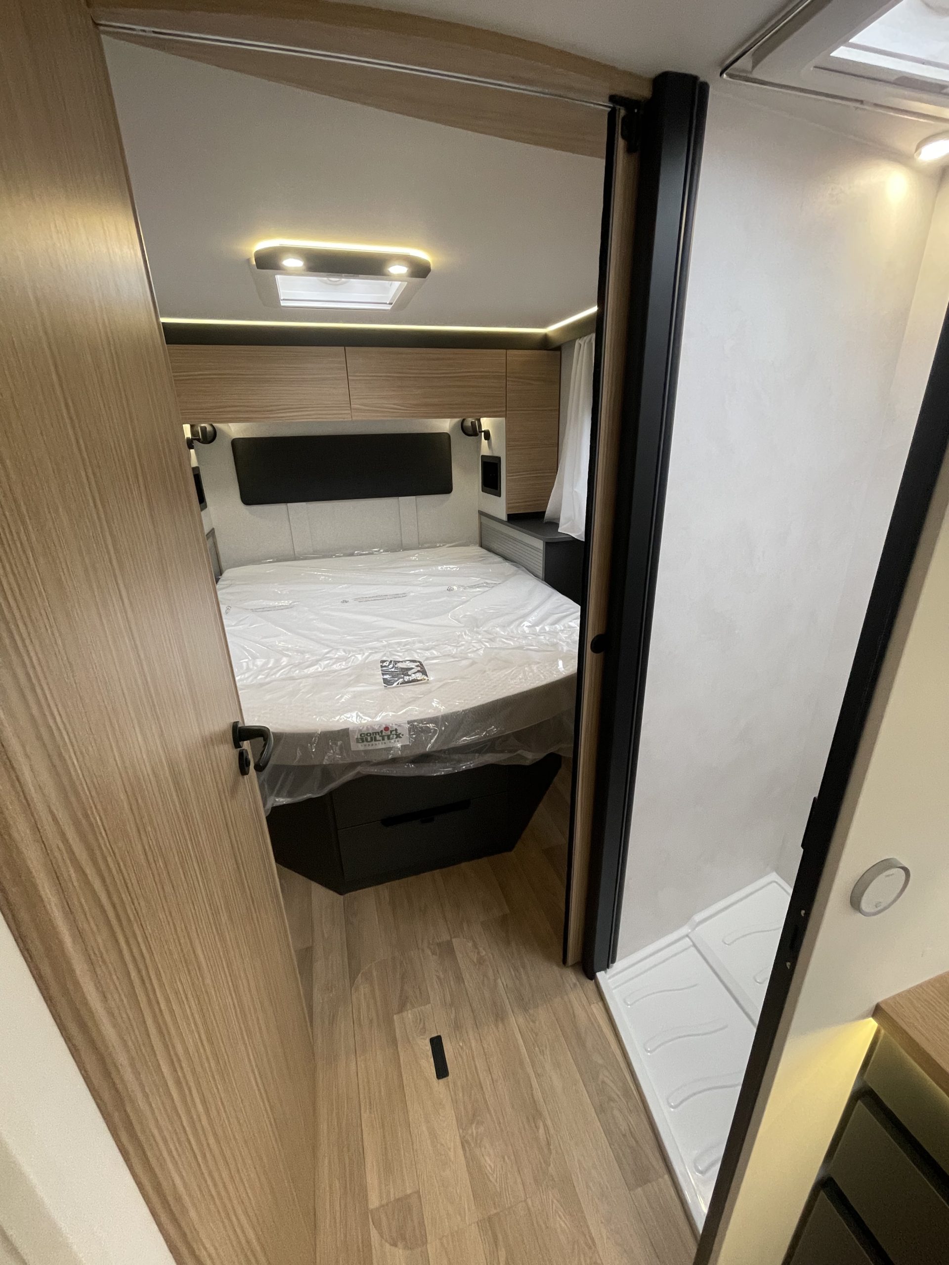 Enjoy its pleasant living spaces and all the advantages of the Al-Ko® chassis: excellent road holding, great driving comfort, enhanced stability, very good insulation thanks to a 21 cm double floor, and a multitude of storage areas, accessible from both inside and out.