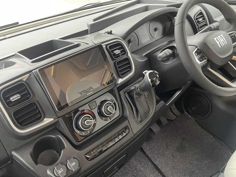 Face to face lounge with twin rear beds, 4 berth, 4 travel seats, the Evidence Range comes with, Automatic Transmission, 16” alloy wheels, radio controlled multifunction Leather Steering Wheel, leather gear gator, chrome instrument dials, aluminium dash kit, cruise control, daytime running lights, central door locking (including the habitation door), Blinds all round including cab blinds, electric step, reverse camera, solar panel, oven, side skirt locker, awning. This Motorhome also comes with 2 year Fiat manufactures warranty, 2 year Pilote manufactures warranty, 12 Months Breakdown Warranty and 12 Months road fund licence.