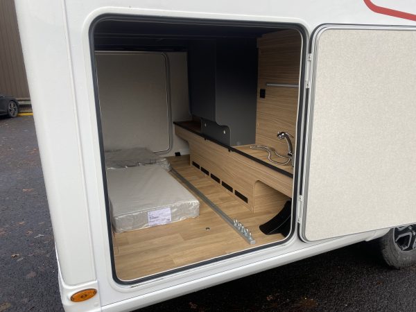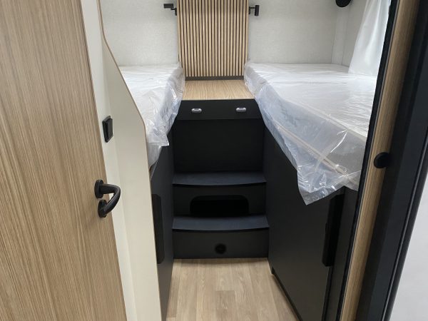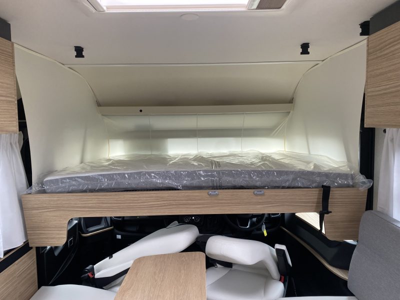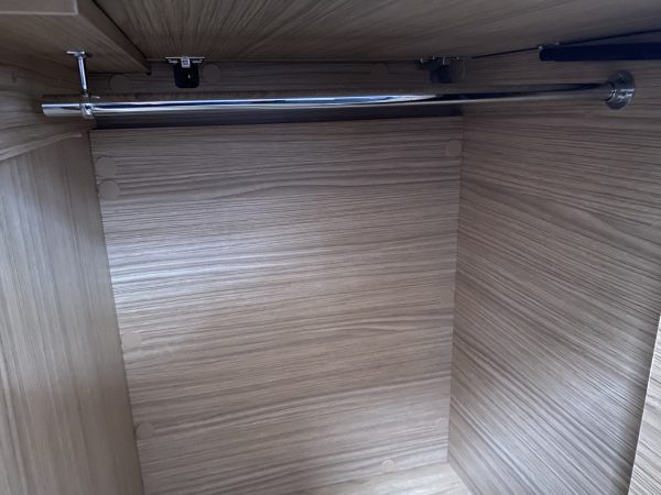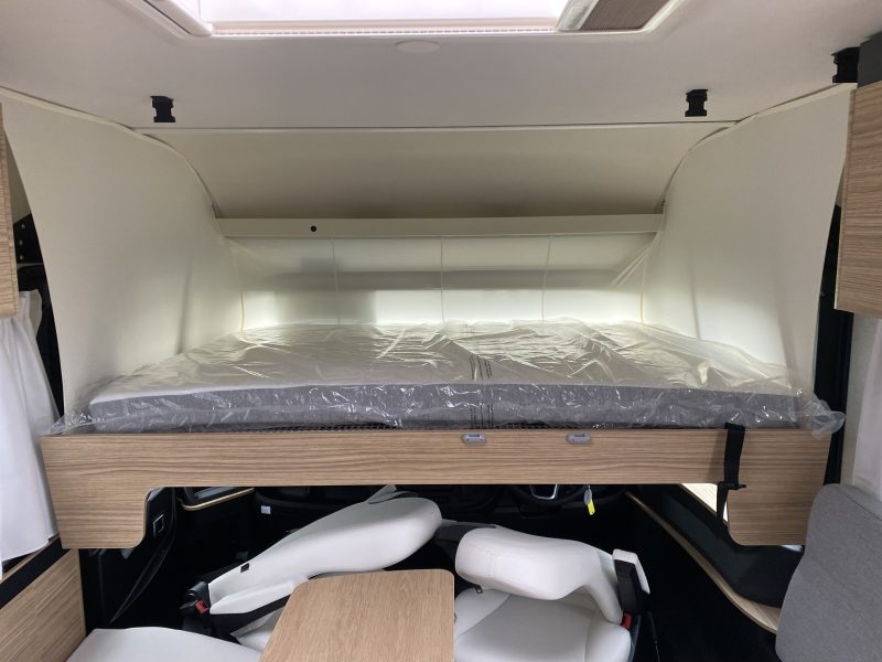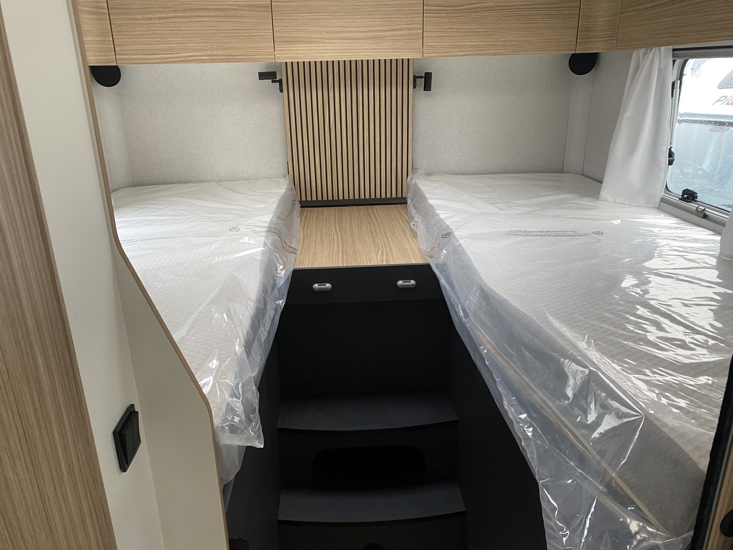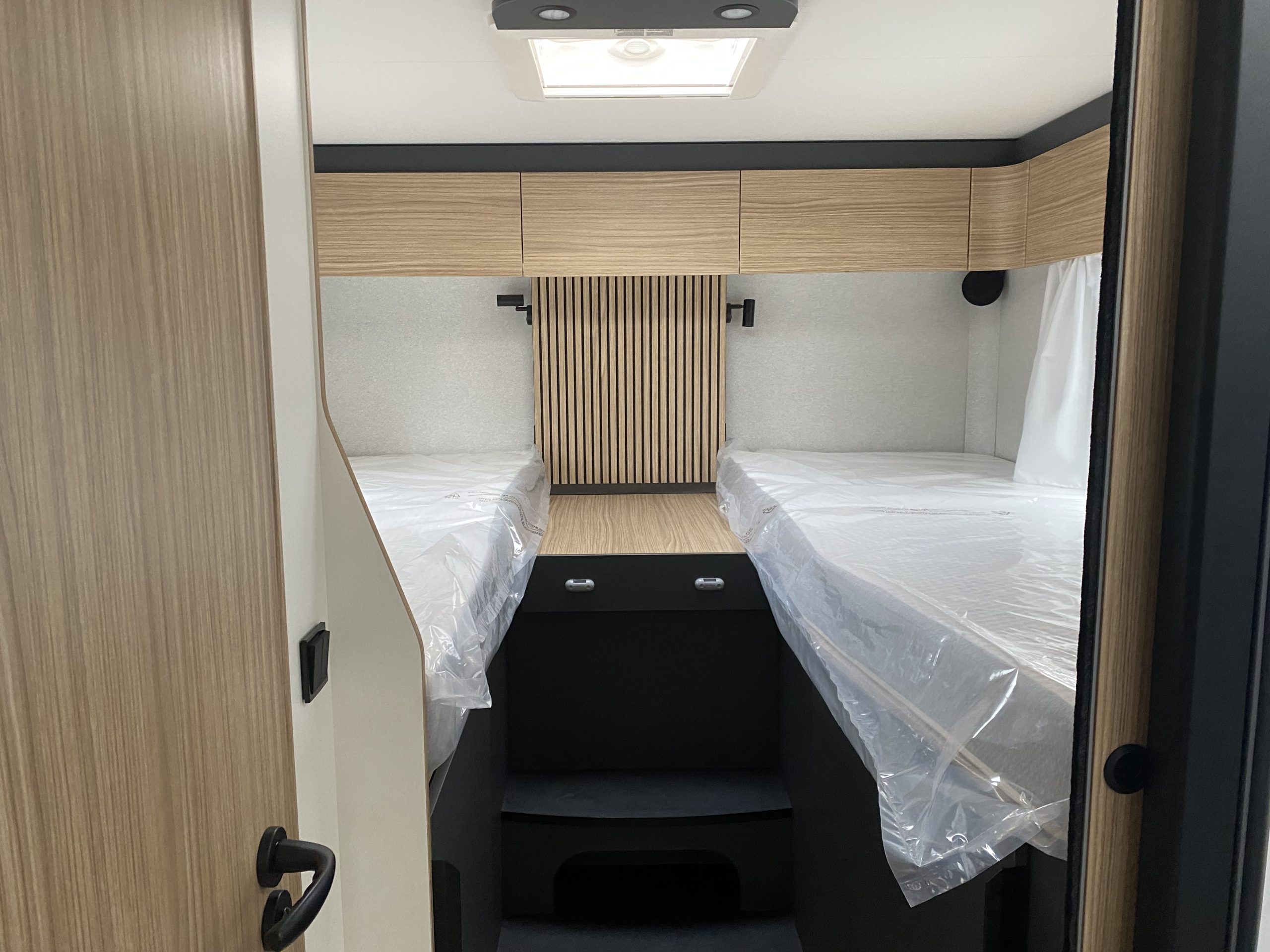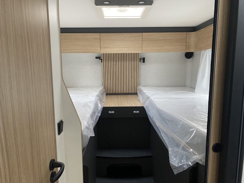 Over the hold, choose between a king-size bed thanks to the extra bed insert (included as standard) or the low twin bed version (to access the beds without any ladder) and adapt your vehicle to suit your needs. Under the high-level beds, you’ll find a vast storage hold which can be accessed from either side as well as wardrobes at the foot of the beds.
