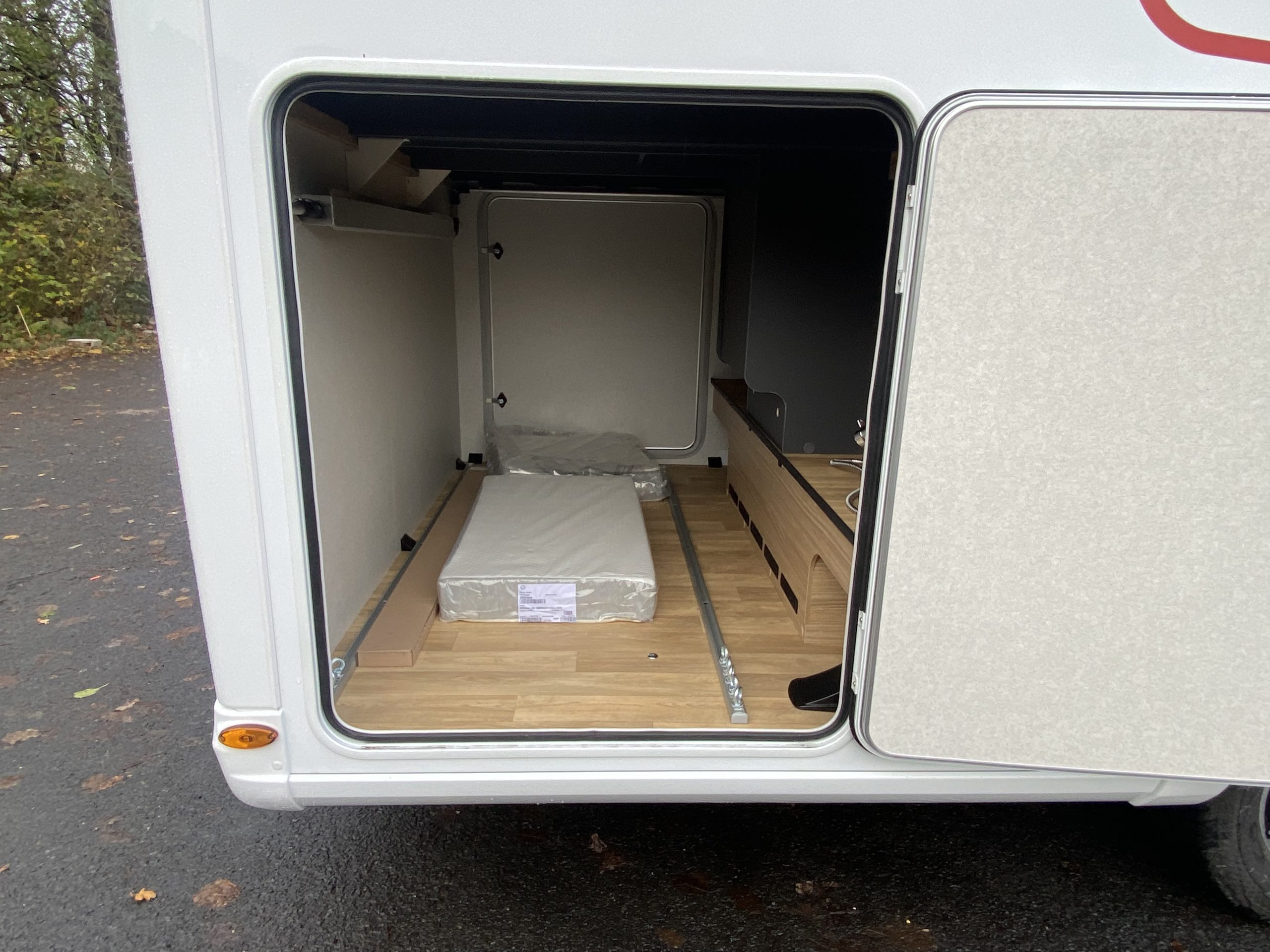 Enjoy its pleasant living spaces and all the advantages of the Al-Ko® chassis: excellent road holding, great driving comfort, enhanced stability, very good insulation thanks to a 21 cm double floor, and a multitude of storage areas, accessible from both inside and out.