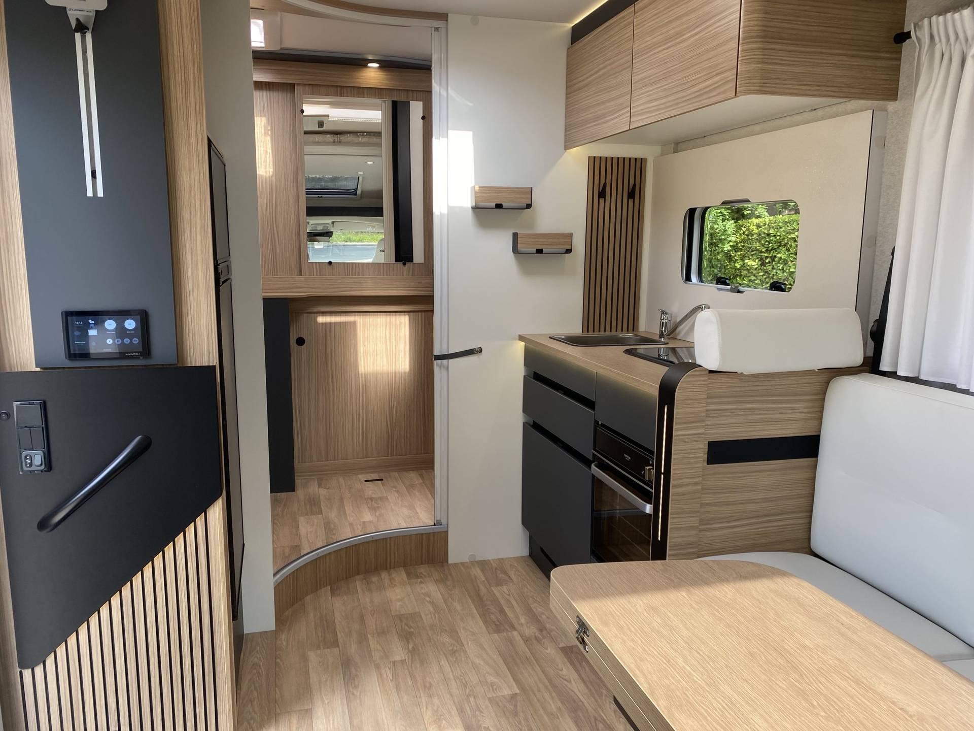 This very popular layout consists of a very large front lounge which converts easily into a double bed and with a large drop down electric double bed above gives generous sleeping space, a large rear washroom/WC with huge storage and a very large garage area.