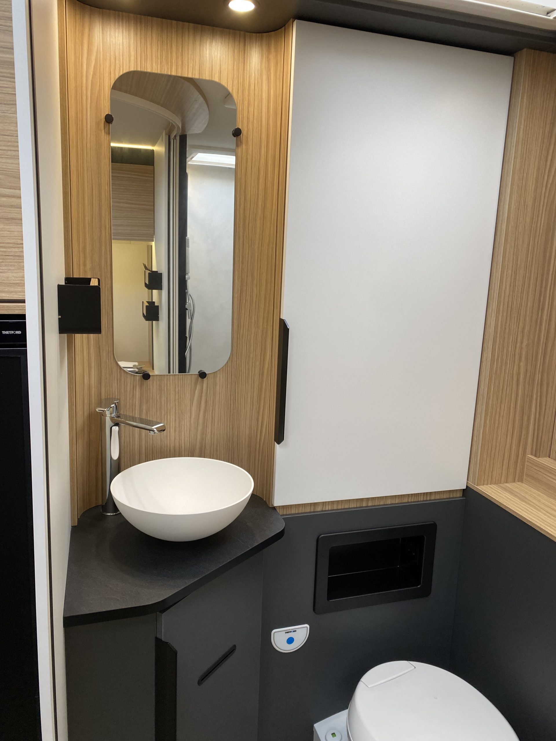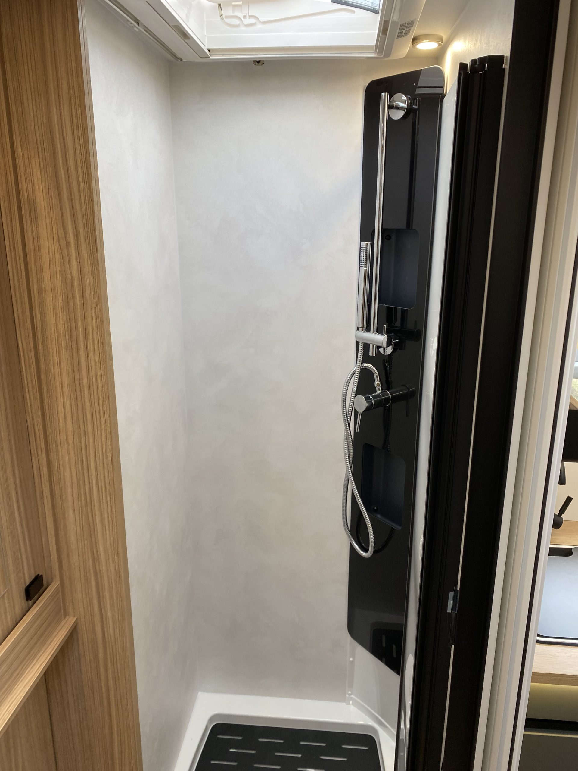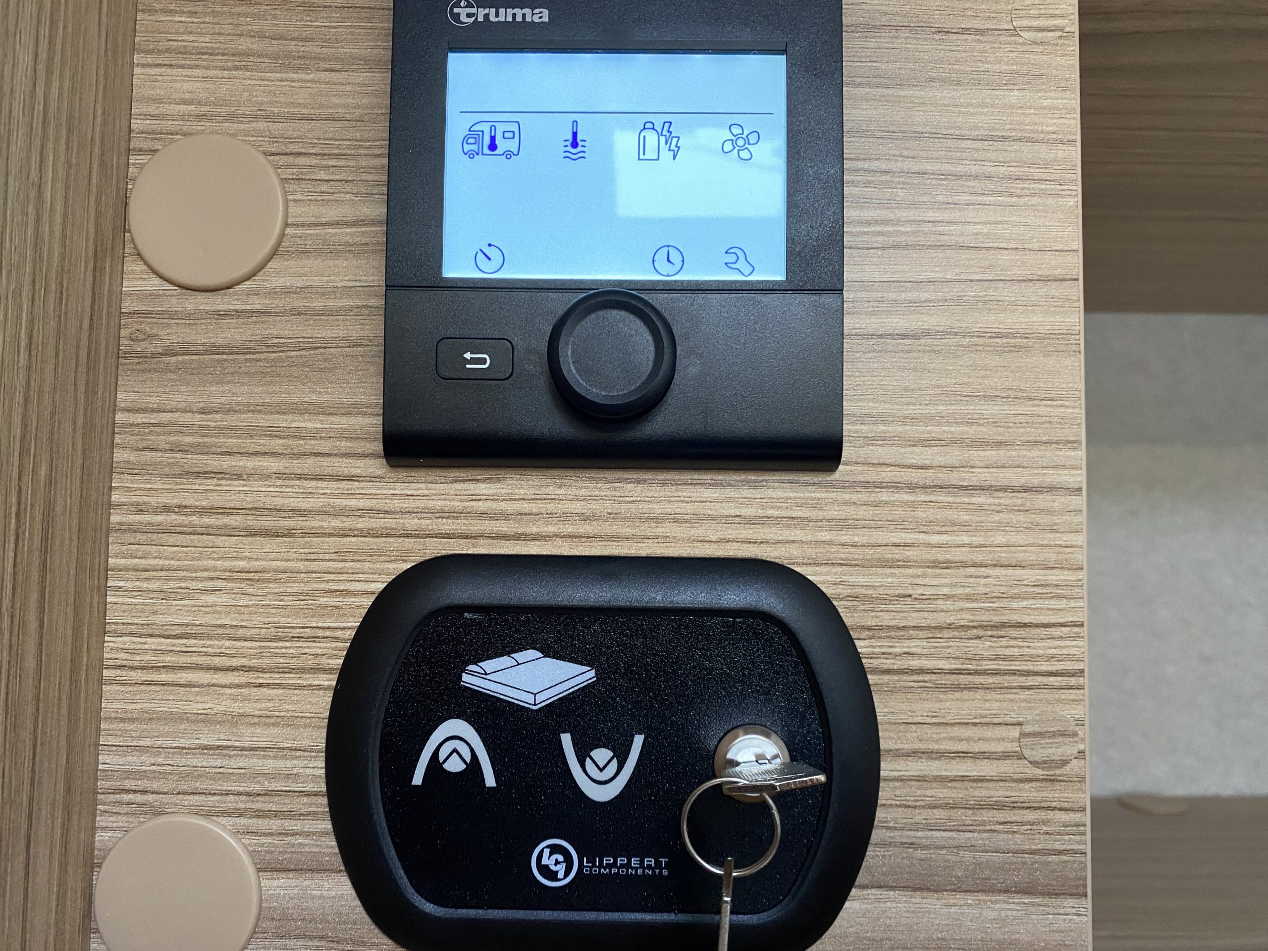 - Truma Combi D6E (diesel and electric) hot water with a blown air heating system