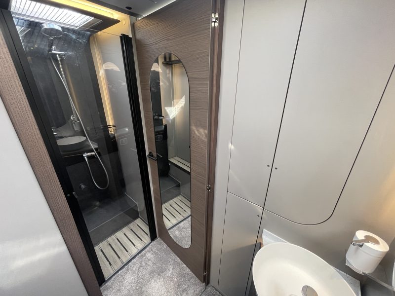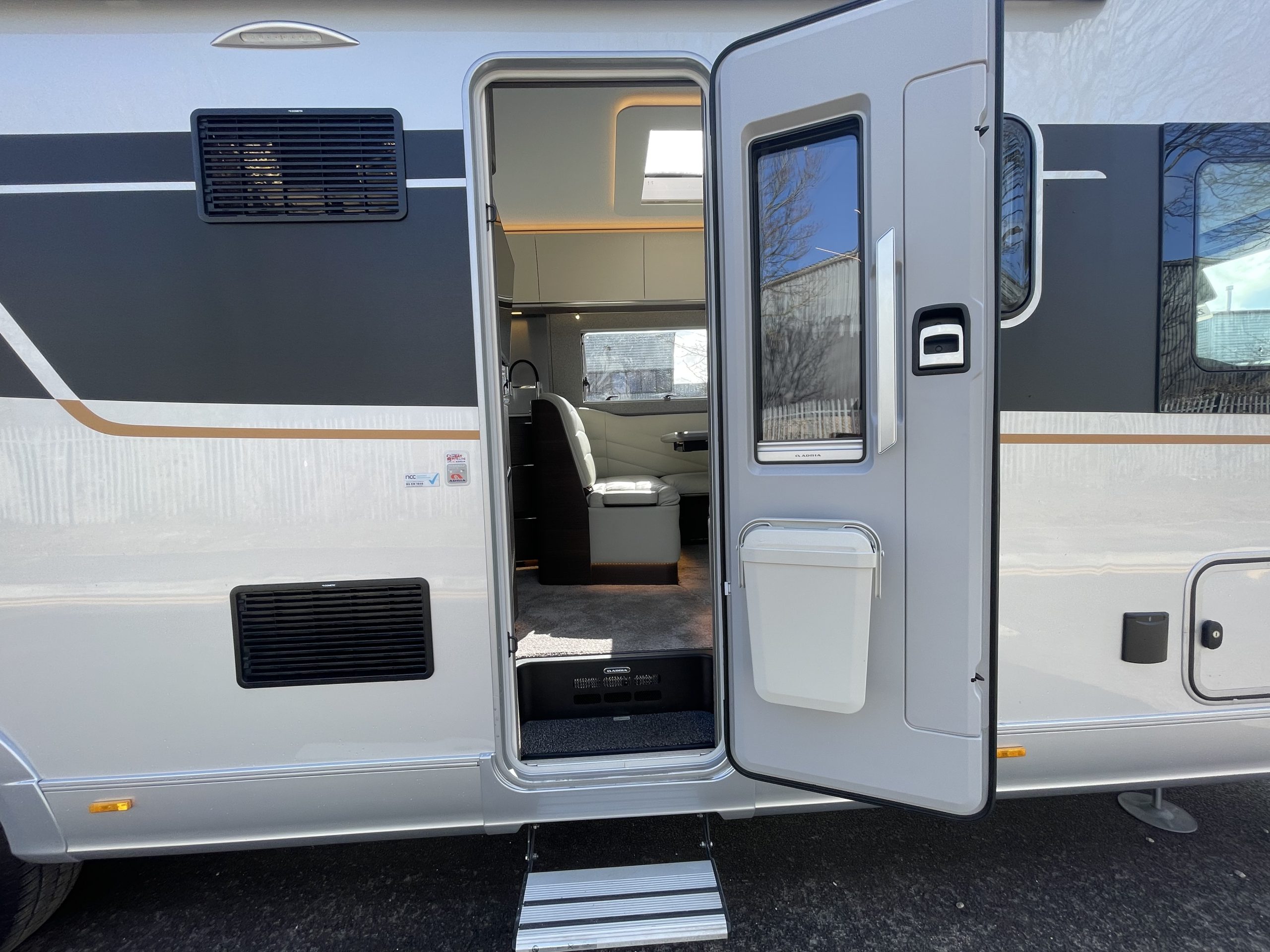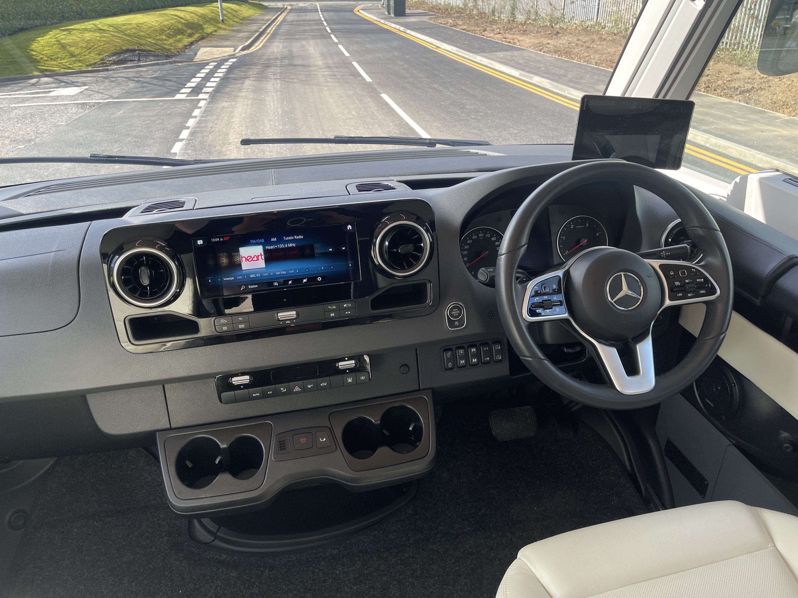 This huge specification includes Habitation Air Conditioning, Tracker, Garmin Truck Sat Nav, MBUX Multi media system with 10.25 inch touch screen, ALDE Heating, Solar Panel, Coffee Machine, Cab Air Con, Cruise Control, Blinds all round, and many more features listed below