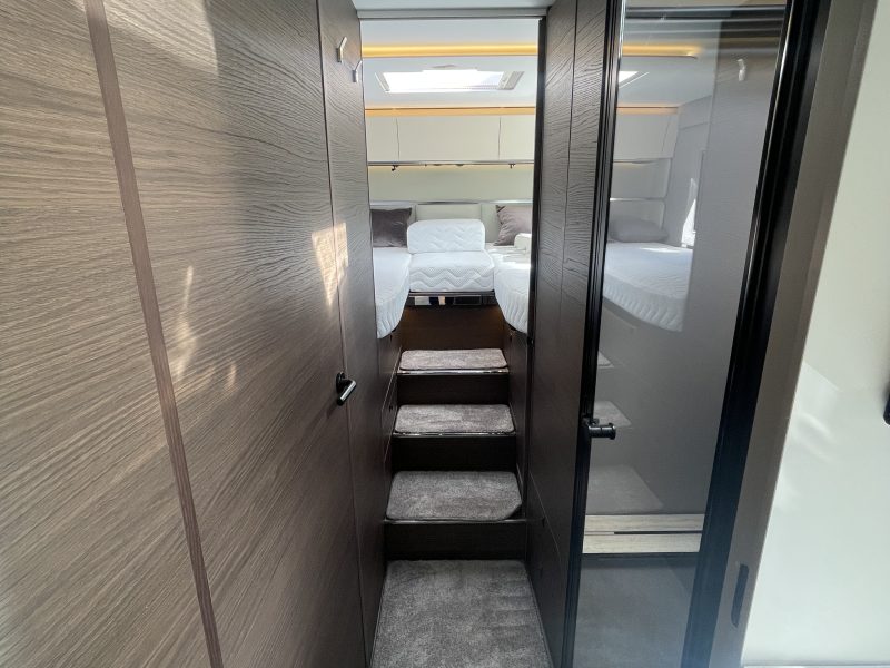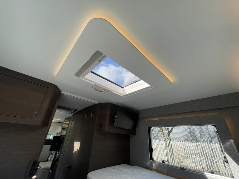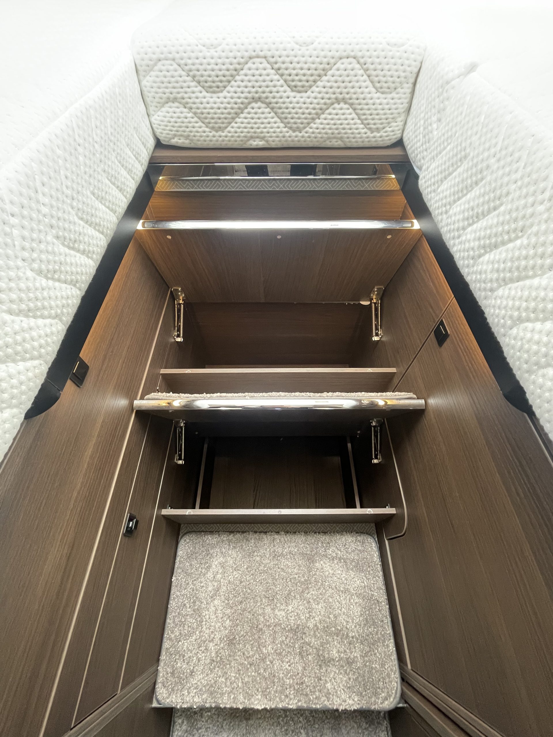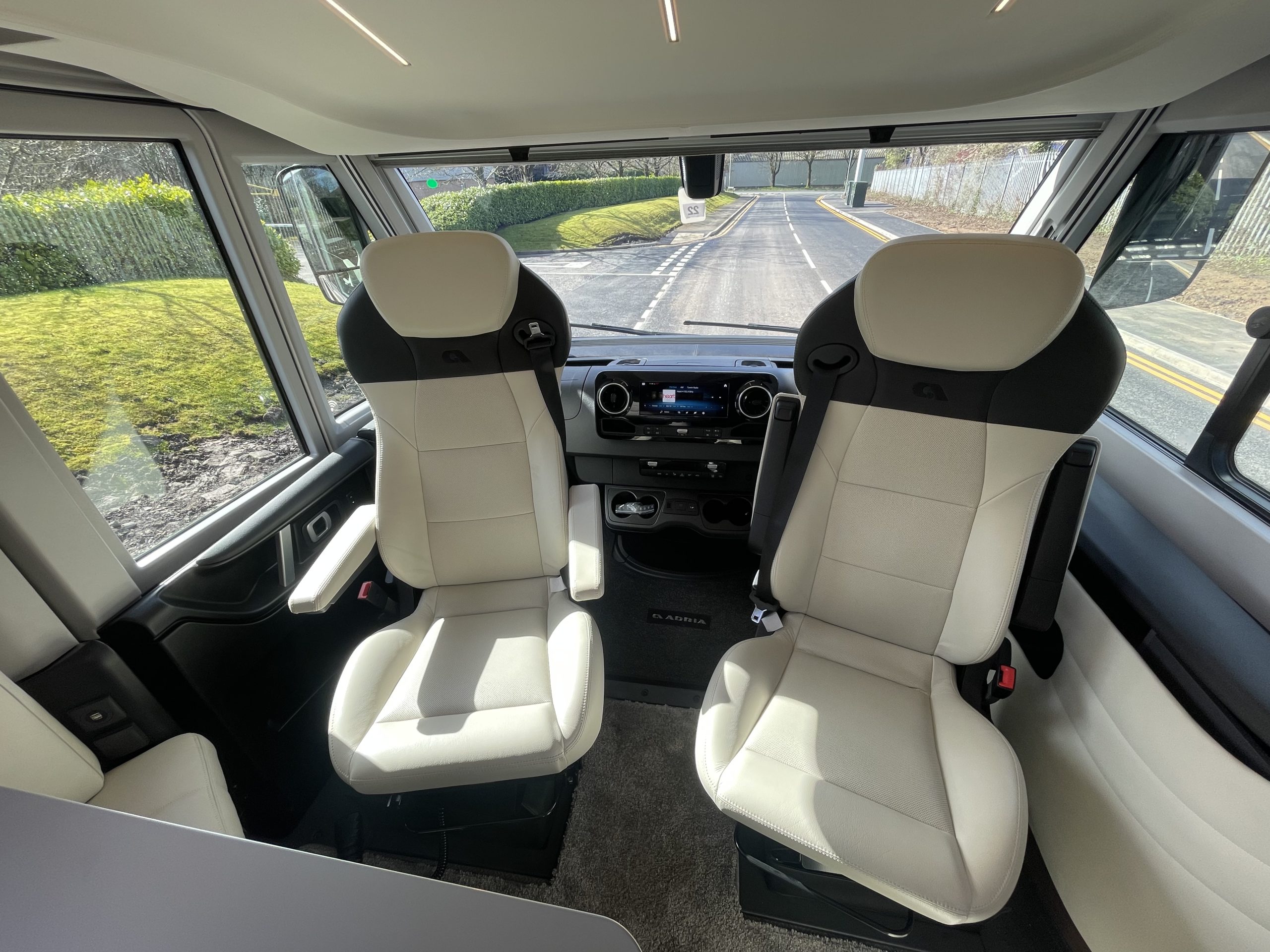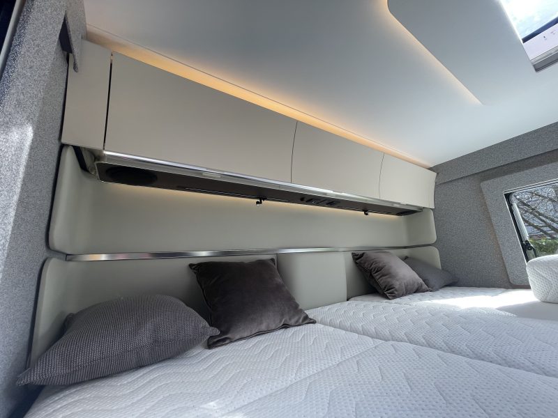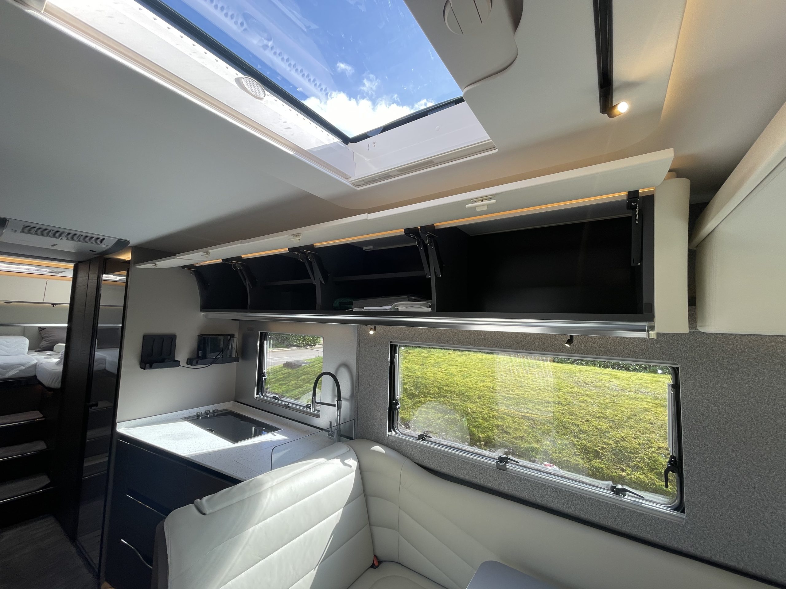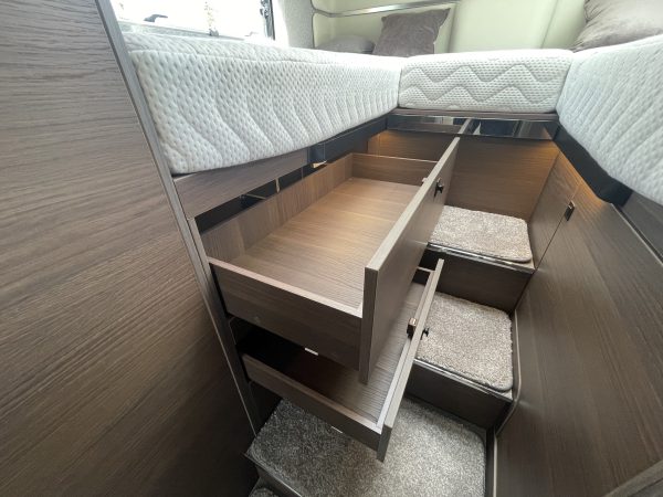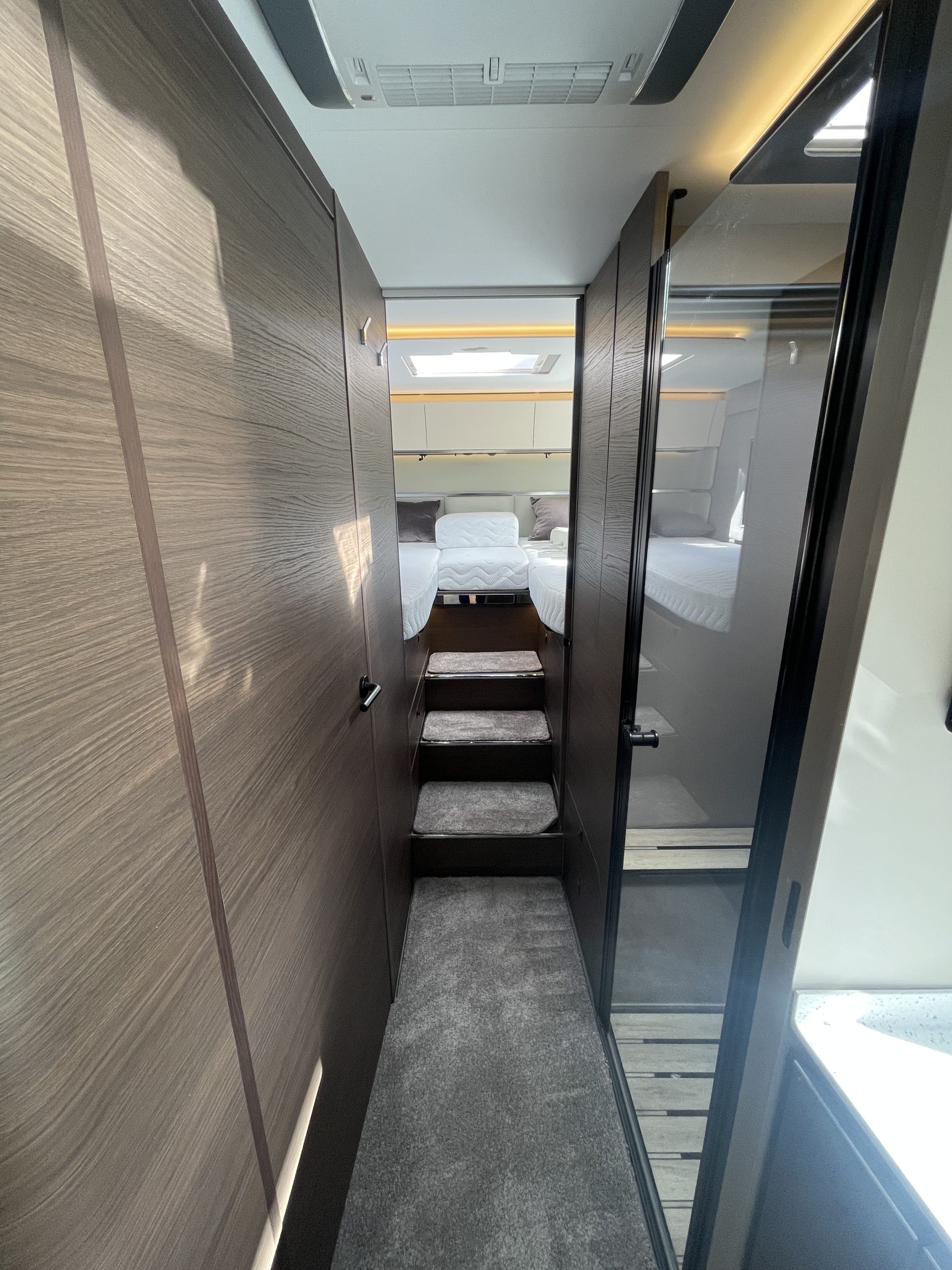 Finished in full Mathisse Leather interior this popular layout consists of a large Electric over-cab bed and a spacious rear bedroom with Twin Single beds which can be easily made up to a large double.
