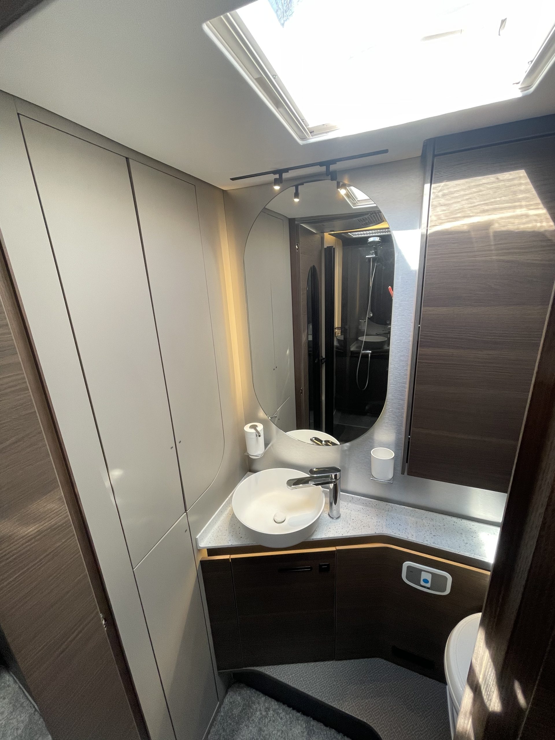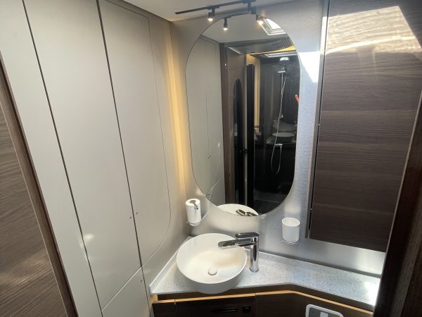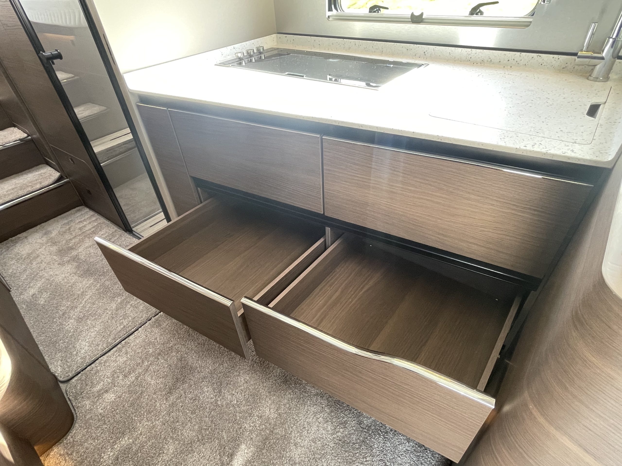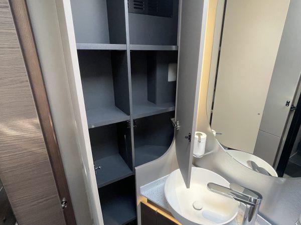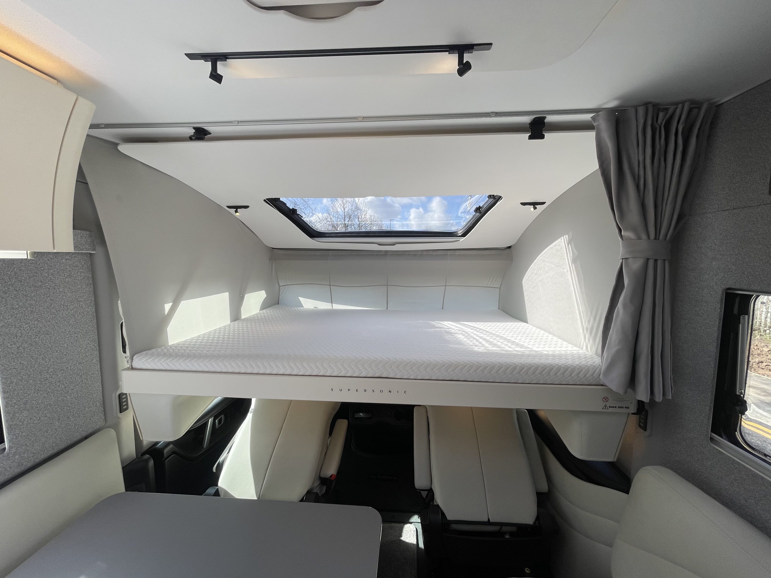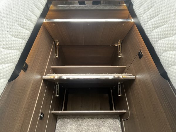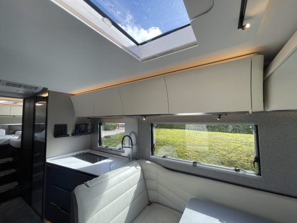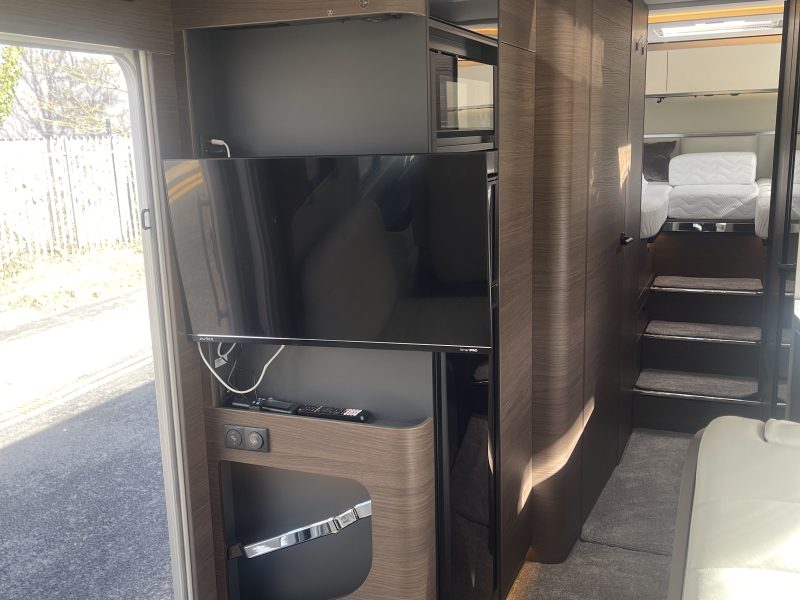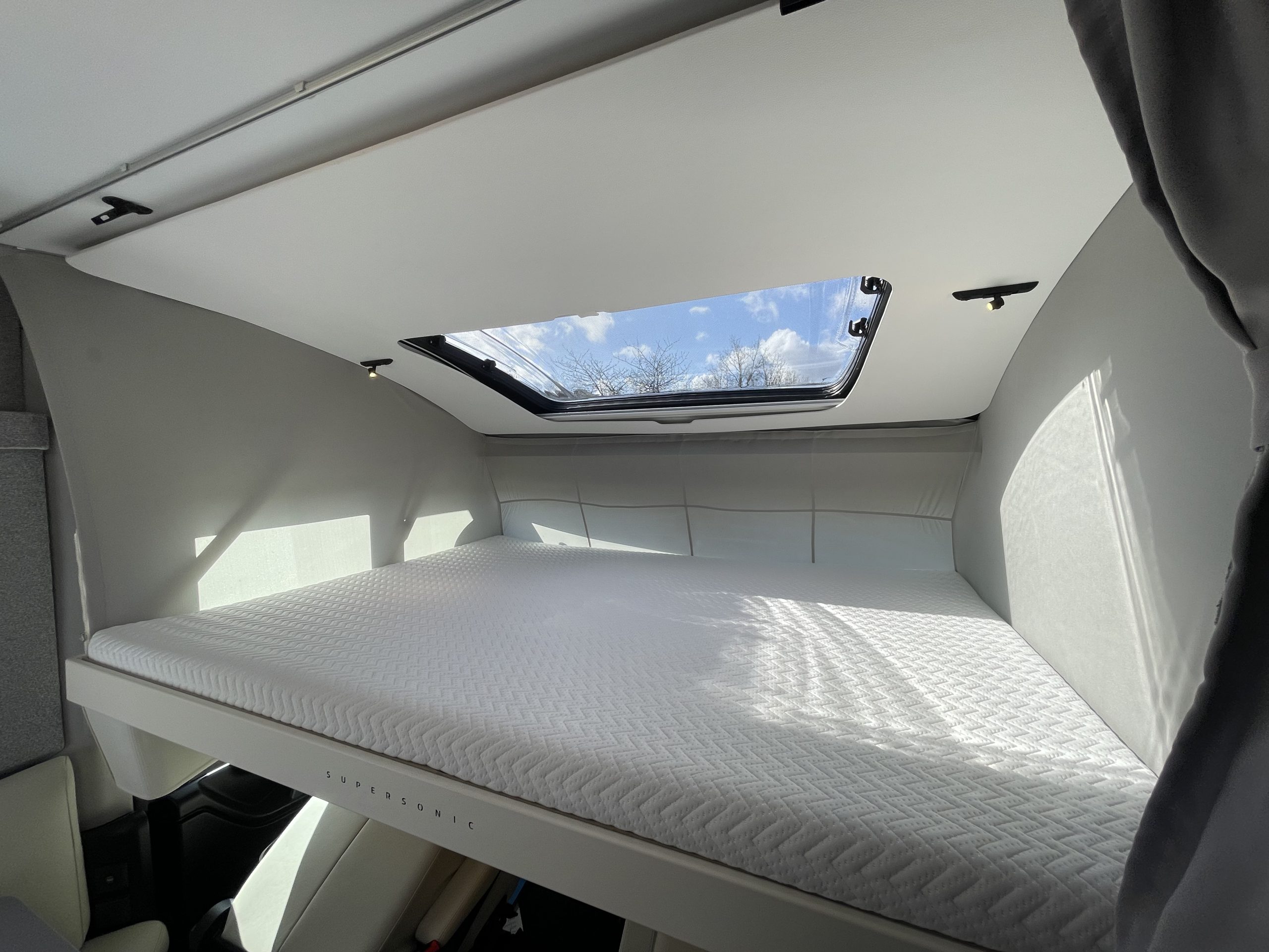 Finished in full Mathisse Leather interior this popular layout consists of a large Electric over-cab bed and a spacious rear bedroom with Twin Single beds which can be easily made up to a large double.