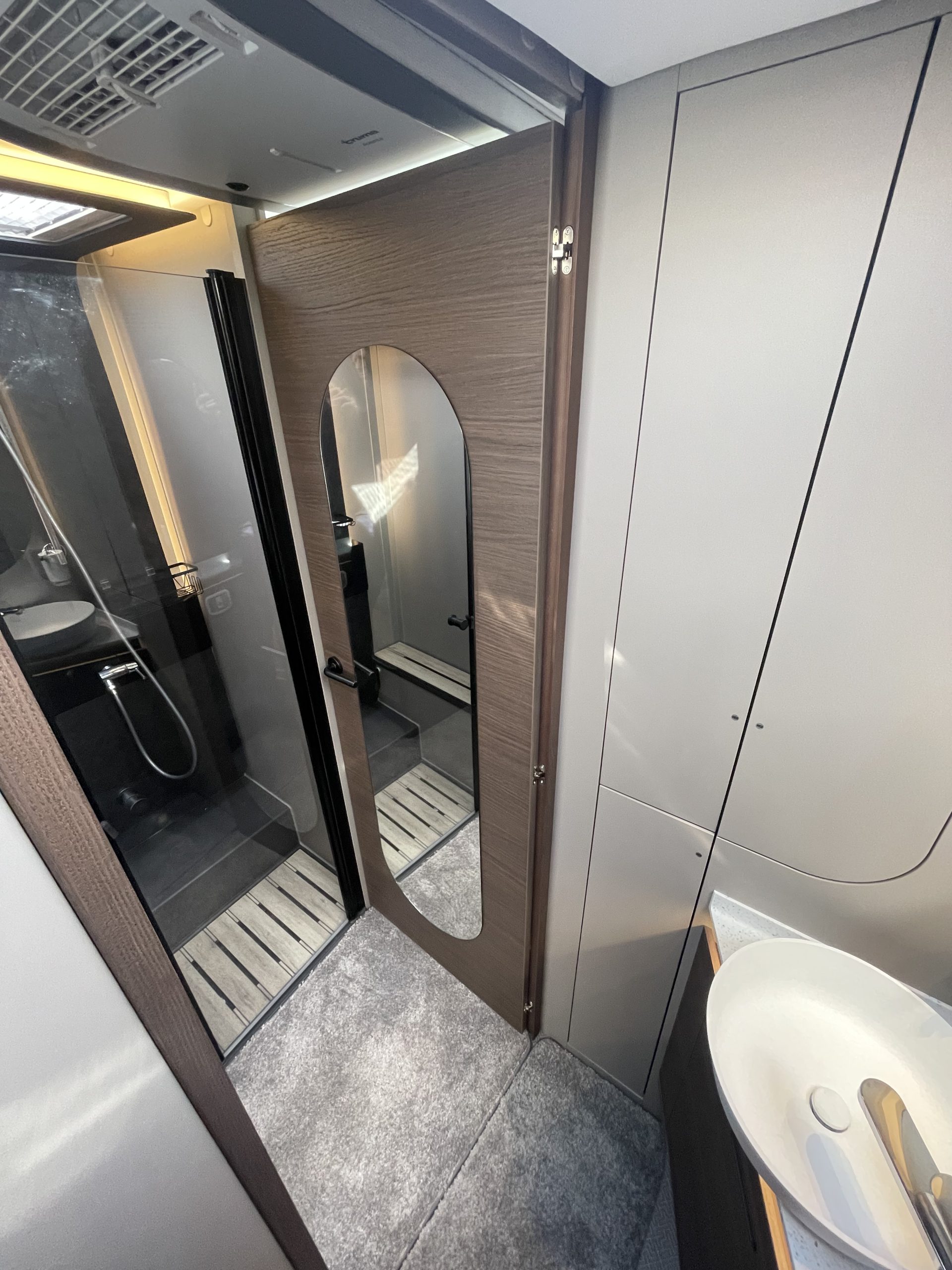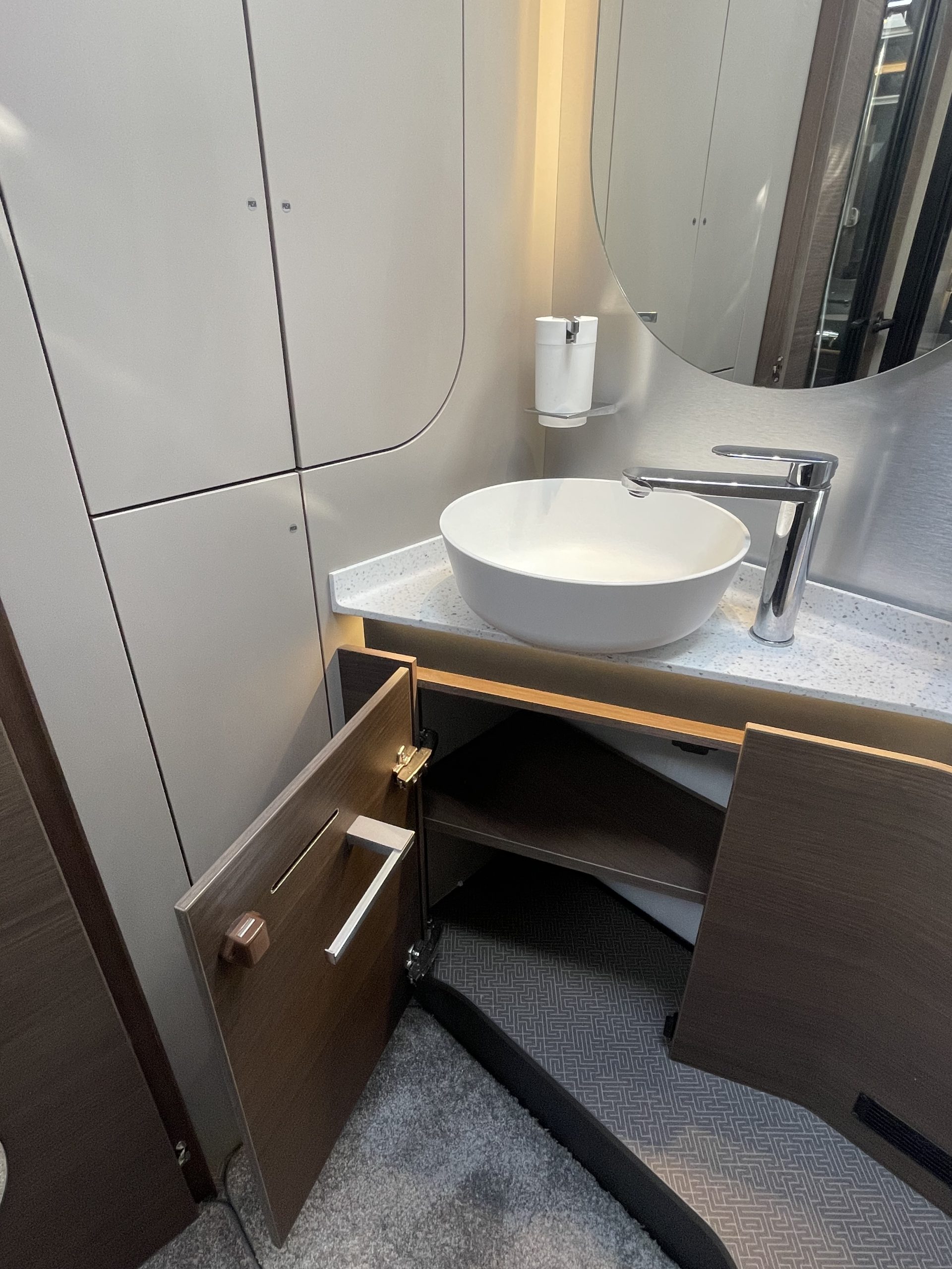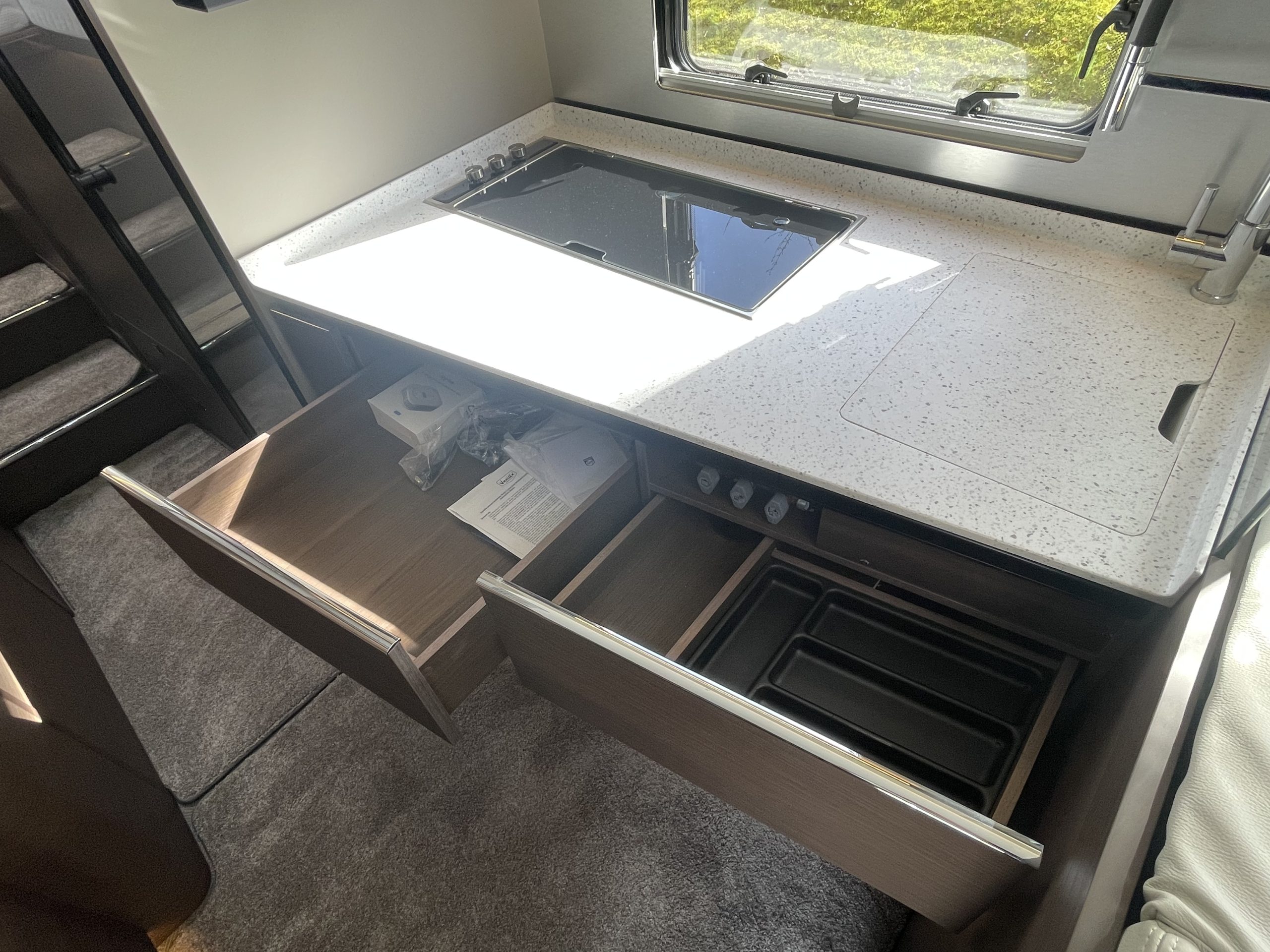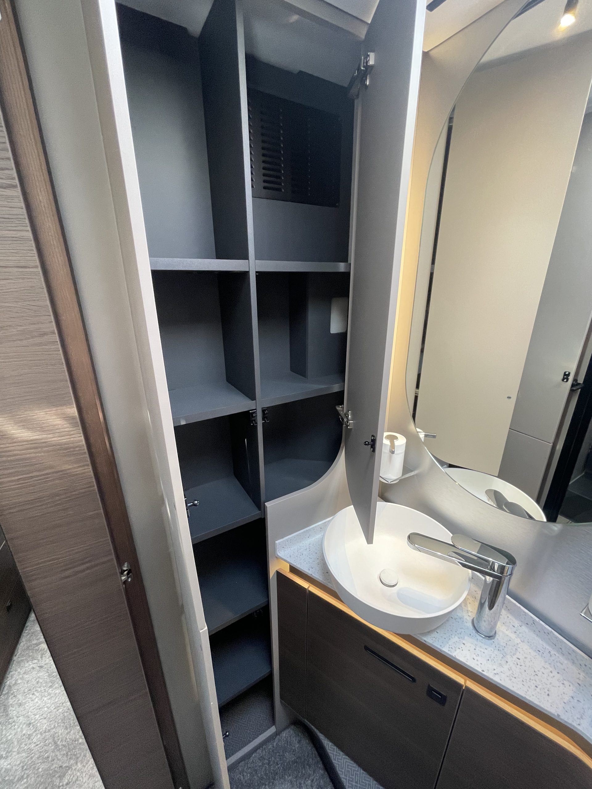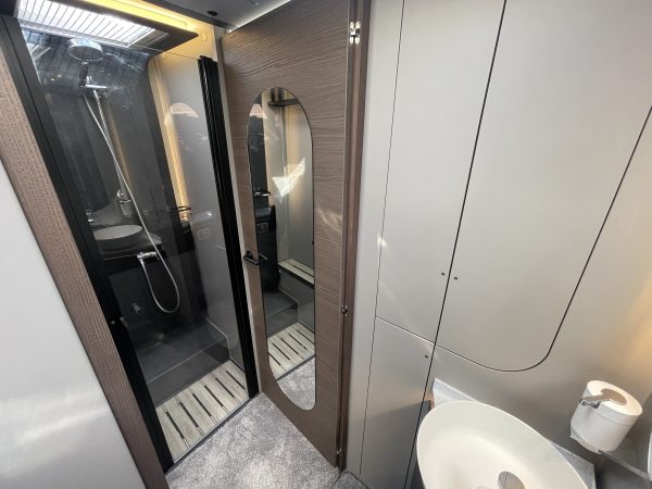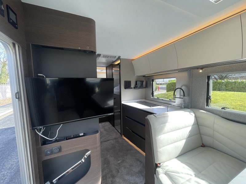 Finished in full Mathisse Leather interior this popular layout consists of a large Electric over-cab bed and a spacious rear bedroom with Twin Single beds which can be easily made up to a large double.