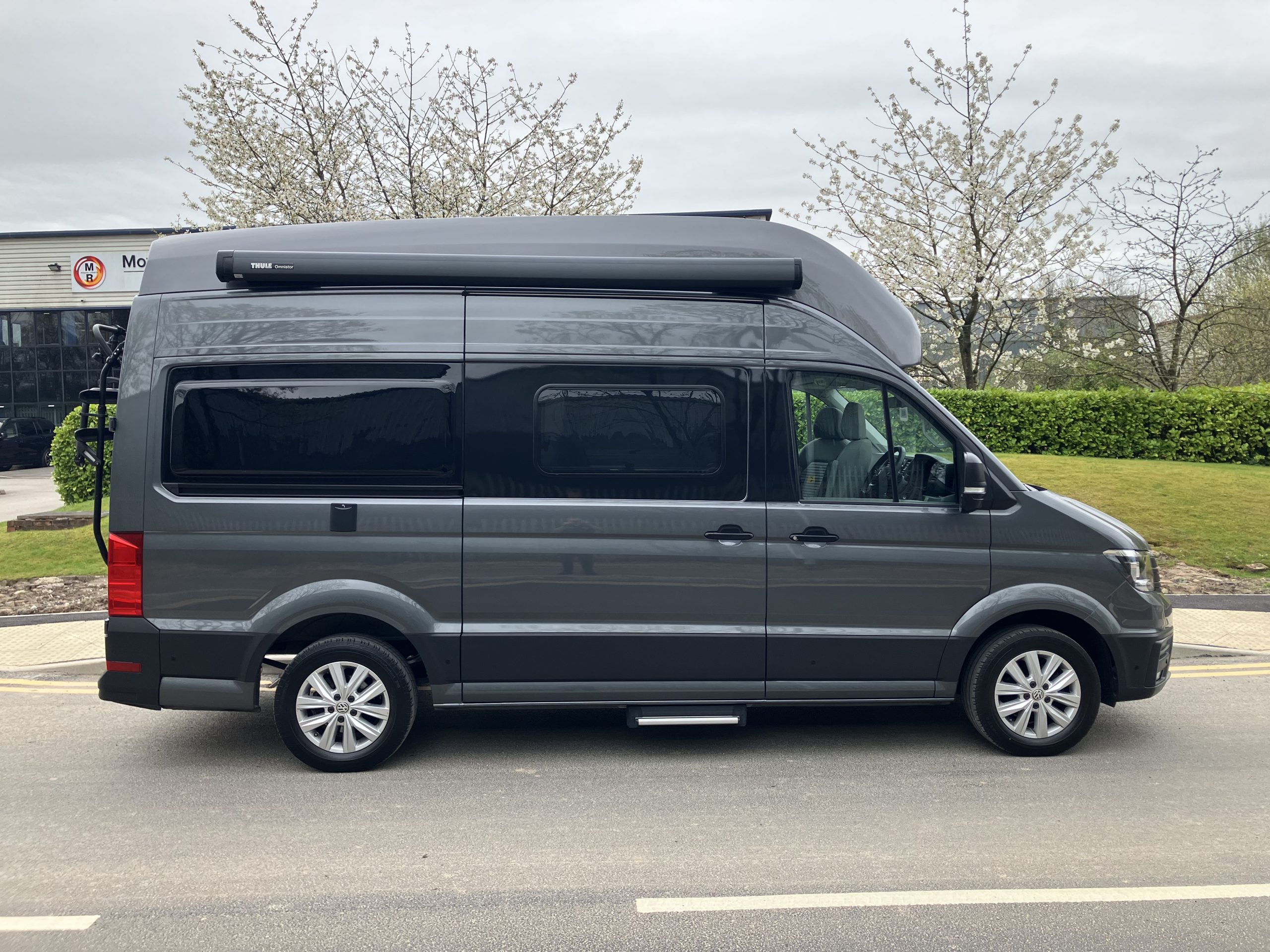 2021 Volkswagen Grand California 600 2.0 TDI Automatic – Only 24788 Miles – Dark Grey – Volkswagen Grand California 600 finished in Dark Grey. First registered 31/12/2021 (21 plate). Powered by the smooth and reliable 2.0 TDI engine with automatic gearbox, this Euro 6 camper offers effortless driving and excellent efficiency. Built on the renowned Volkswagen Crafter platform, the Grand California is one of the most sought-after factory campervans thanks to its superb build quality, clever layout and everyday drivability at 3.5t – meaning it can be driven on a standard licence. Inside, the thoughtfully designed living space includes a comfortable rear sleeping area, fully equipped kitchenette, dining area and a compact bathroom with shower and toilet, making it ideal for weekend escapes or extended touring. Practical storage throughout and premium Volkswagen finishes make this a truly comfortable home on the road. This example has low mileage, presents in excellent condition. Drive on a standard licence Factory Volkswagen camper conversion A fantastic opportunity to own a low-mileage Grand California, ready for its next adventure. Full VW service history.