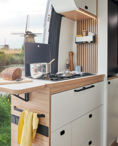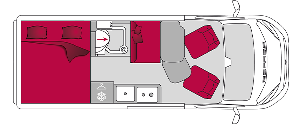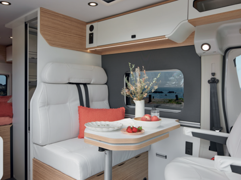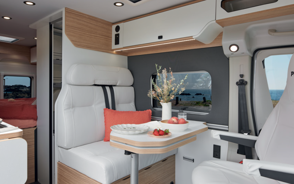 Our Pilote panel vans feature well planned living rooms to seat between two and four people. Enjoy every moment with a comfortable living area for you, family and friends.