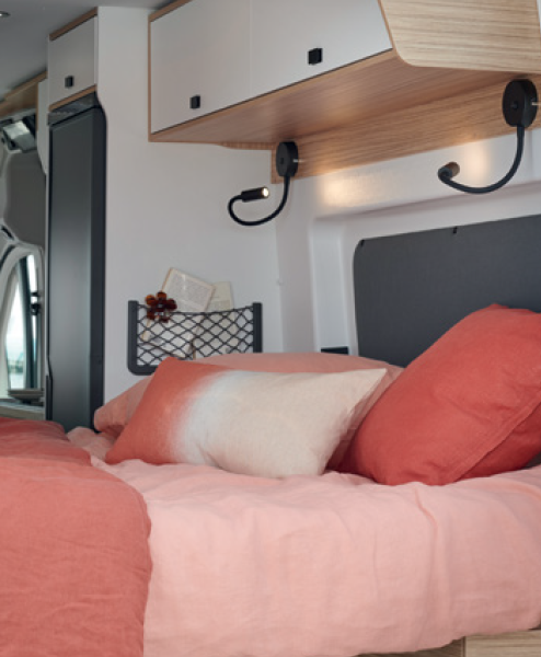 Our Pilote Vega range of panel vans is adaptable and customisable to meet many different needs and preferences. Whether you want to admire the view with their double panel windows and aluminium frames or enjoy a comfortable sleep with the high performance Truma heating system, you can live and travel with the peace of mind that rest, leisure and relaxation won’t be disturbed on your holiday.